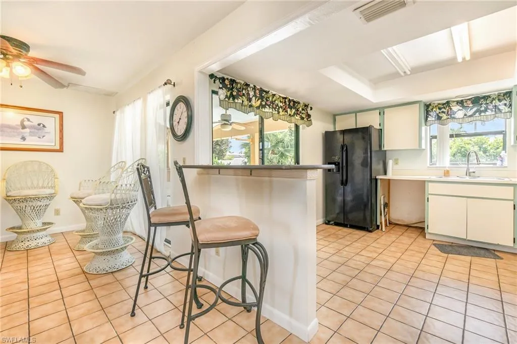 FURNISHED 3 Bedroom, 2 Bathroom, 2 Car Garage, Pool home located in Cape Coral. NO HOA FEES! CLICK ON THE VIRTUAL TOUR LINK 1 FOR THE VIDEO AND VIRTUAL LINK 2 FOR THE 3D TOUR. Seamlessly entertain friends and family with an open living and dining room with large windows and a glass slider for plenty of natural lighting. The kitchen has ample counter space, a breakfast bar for casual dining and a glass slider to the lanai. A spacious master suite has a glass slider to the side yard and a private bathroom with a large walk-in closet, a single sink vanity, a walk-in shower and access to the lanai. The guest bedrooms are on a split floor plan, providing plenty of privacy, with built-in closets and a shared guest bathroom nearby. A private oasis awaits on the lanai where you can take a dip in the pool, soak up the sun on the pool deck, or unwind with a drink at the tiki bar—all surrounded by a spacious backyard with room to add a garden or expand your outdoor entertaining area. Located close to local shopping & boutiques, fine & casual dining, LIVE entertainment, and a short car ride to award-winning beaches! Schedule your showing TODAY!