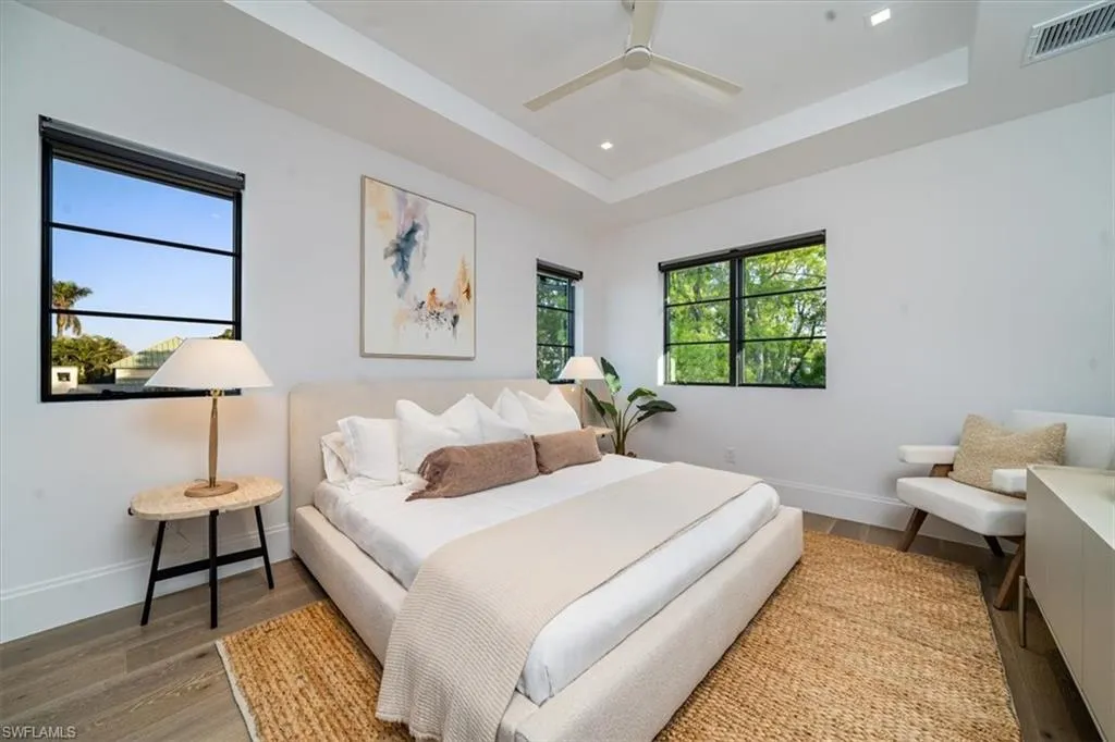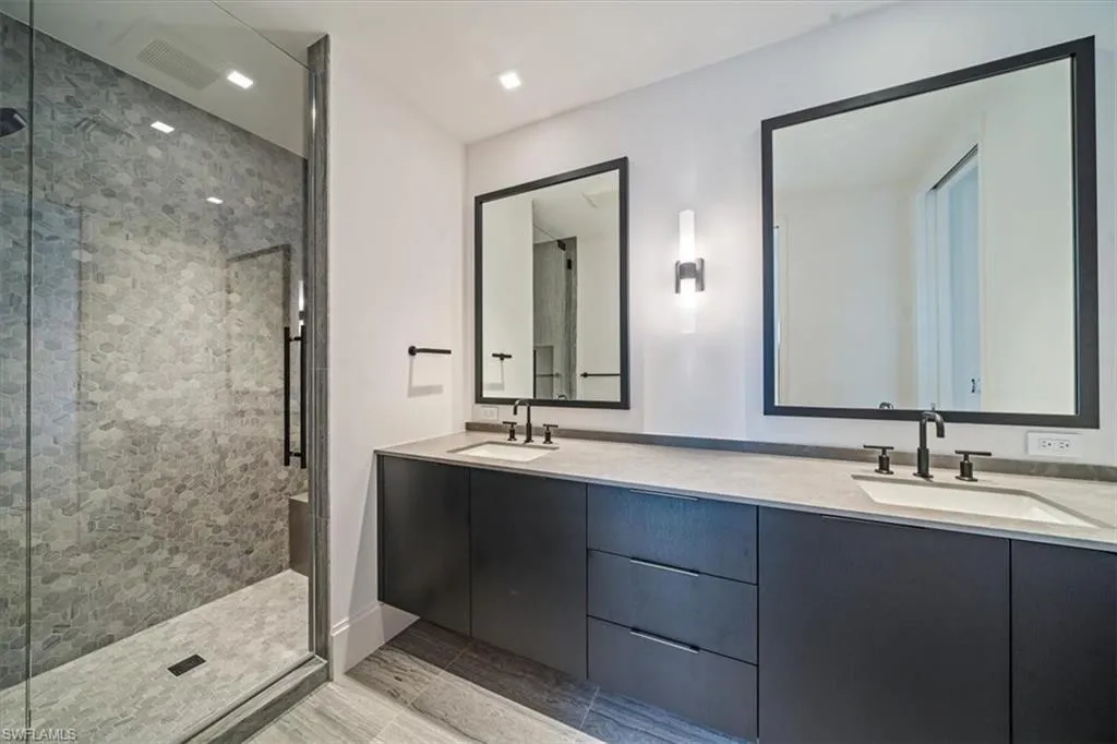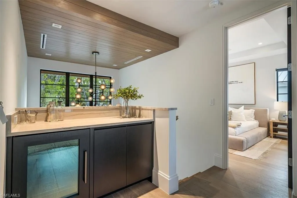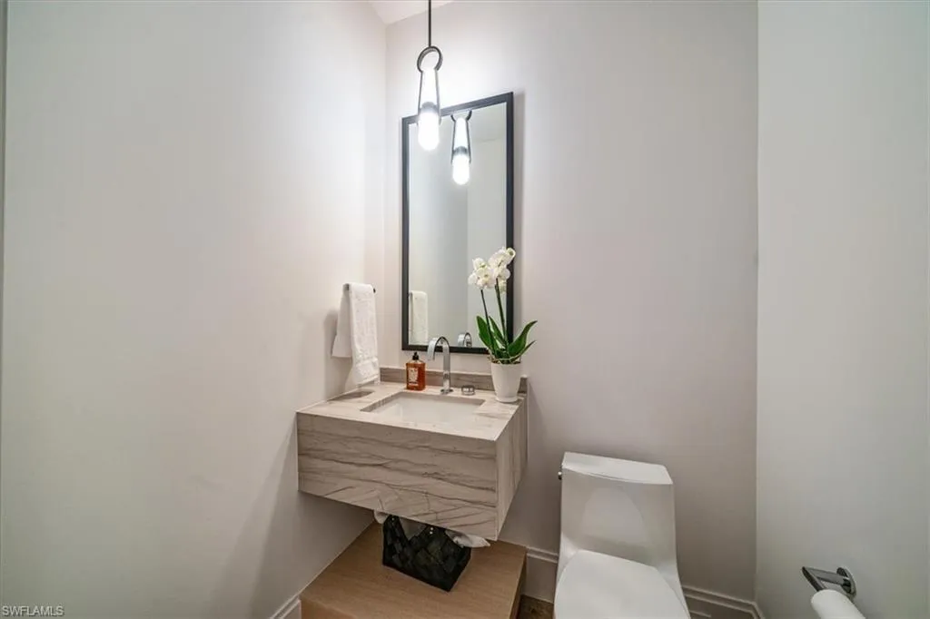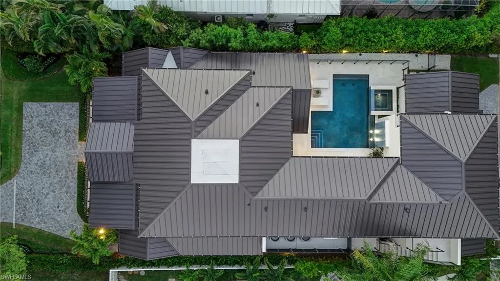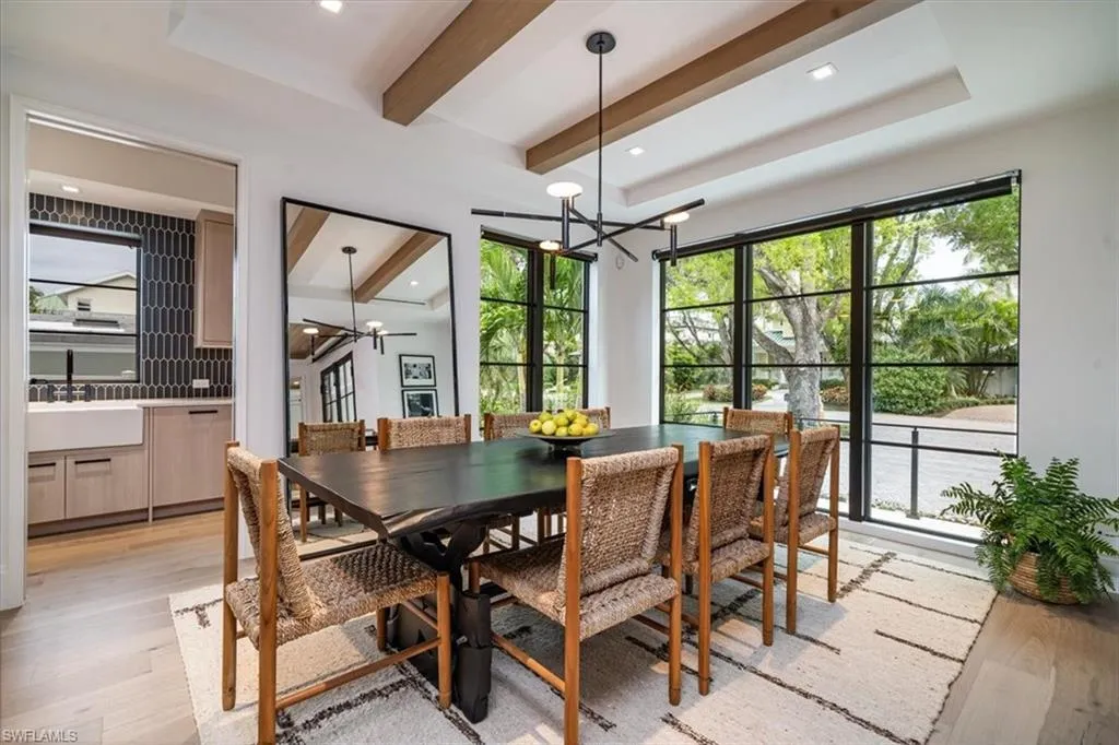 This extraordinary custom-designed home is the epitome of luxurious living in downtown Naples. A true collaboration of the distinguished C&E Builders and the celebrated Ruta Menaghlazi of Theory Design—this one-of-a-kind property effortlessly blends impeccable craftsmanship with modern elegance. Located just moments from the pristine sugar-sand beaches and within walking distance to the world-class shopping, dining, and entertainment of 5th Avenue South, 3rd Street, and the highly anticipated Naples Beach Club, it offers an unparalleled lifestyle. Upon entering, you are greeted by an breathtaking floating staircase that serves as a striking focal point of the home. The open-concept floorplan is bathed in natural light, with soaring ceilings adorned with wood beams that create a beautiful contrast against the sleek ebony accents throughout the home. This is no ordinary new construction—it’s a masterpiece that balances warmth and sophistication in a way that feels uniquely refined and inviting. The heart of the home is its exquisite chef’s kitchen, where luxurious marble countertops and backsplashes provide a breathtaking backdrop to an expansive center island—perfect for entertaining and casual dining alike. This culinary haven features top-of-the-line Miele and Sub-Zero appliances, a dream for any gourmet chef, while the tastefully concealed butler’s pantry enhances the kitchen’s functionality, providing ample space for prep and storage. The primary suite is a retreat, curated for relaxation and comfort. The spa-like master bathroom features stunning marble tile, a luxurious soaking tub, and an oversized shower with multiple showerheads for a true resort experience. Step outside to the tranquil pool area, surrounded by lush landscaping. Designed for entertaining, this home boasts an exceptional indoor-outdoor flow. The outdoor space is adorned with a custom-built fireplace, a summer kitchen, and stunning marble accents, creating the perfect environment for alfresco dining or lounging by the pool. Upstairs, an additional living area serves as a versatile loft complete with a full wet bar—ideal for guests or family members to enjoy their own private space separate from the main living area downstairs. The upper level also features the VIP guest suite, equipped with a full kitchenette, making it the perfect in-law or au pair suite for extended stays. With over 5,000 square feet of thoughtfully designed living space, this home represents the pinnacle of indoor-outdoor living in Naples. The blend of European white oak wood flooring, elegant architectural details, and a sophisticated color palette sets the tone for a residence that is both timeless and contemporary. This custom-built masterpiece is more than just a home—it’s a testament to the finest in Naples living, where every detail has been carefully designed for those with discerning taste.