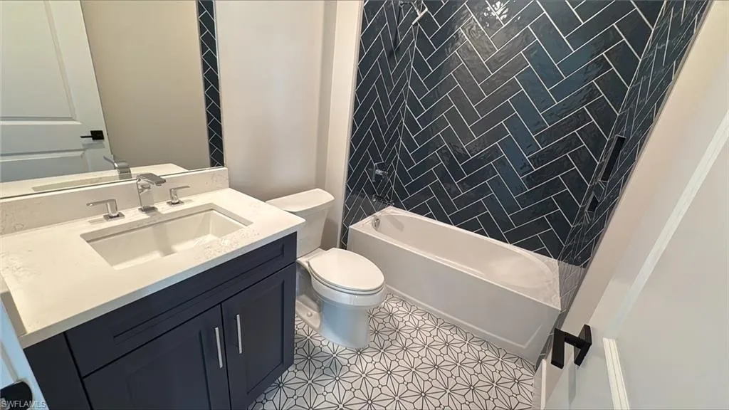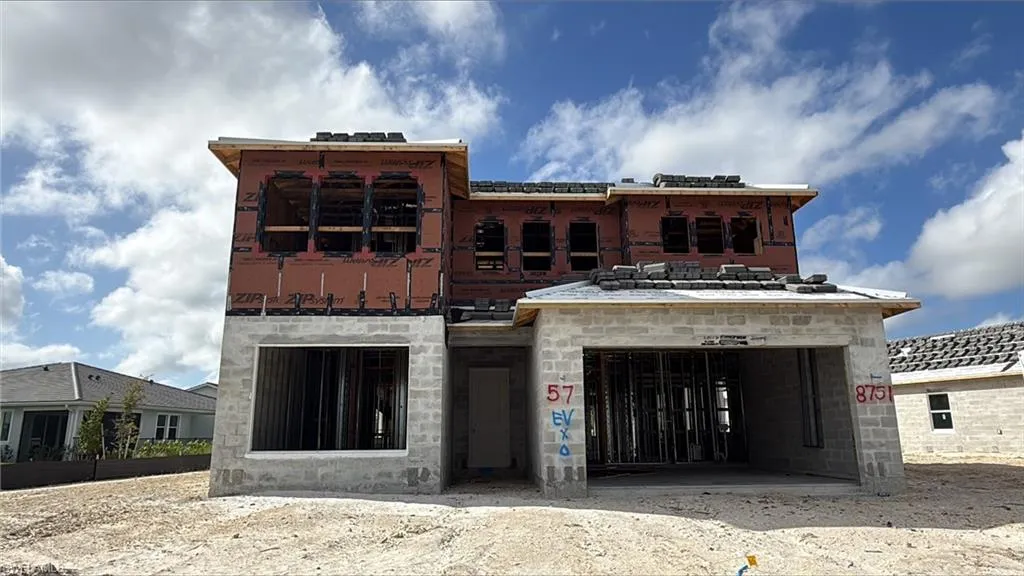 Introducing the breathtaking new construction Volusia Elite floor plan in the heart of South Naples, where luxury meets lifestyle in the prestigious gated community of Seven Shores. Situated on an expansive oversized corner lot spanning over a quarter-acre—a true rarity in this neighborhood—this southwest-exposed residence is designed to capture the essence of indoor-outdoor Florida living. The private pool and spa are beautifully framed by an expansive covered lanai, offering ample room for entertaining guests or relaxing in your own personal oasis, all while overlooking the lush, open backyard. Inside, elegance abounds with a thoughtful two-story layout that places the expansive primary suite on the first floor, complete with double walk-in closets and a spa-inspired en suite bathroom featuring dual quartz-topped vanities, abundant cabinetry, and a stunningly tiled walk-in shower that feels like a personal retreat. The gourmet kitchen is a chef’s dream, featuring hand-selected two-toned cabinetry, premium quartz countertops, a natural gas cooktop–ideal for premier cooking, a suite of stainless steel appliances, and an oversized walk-in pantry that offers more than enough space for all your culinary needs. Upstairs, two beautifully appointed guest bedrooms are complemented by a full bathroom, a versatile loft space perfect for lounging or working from home, and a dedicated media room ideal for cozy movie nights or game-day gatherings. Beyond the home, Seven Shores offers a resort-caliber amenity center including a clubhouse, state-of-the-art fitness center, luxurious resort-style pool, tennis courts, pickleball courts, putting green, and a full-time lifestyle director who curates year-round events, gatherings, and community experiences. This home is more than just a place to live—it’s a statement of refined living, effortless comfort, and exceptional quality in one of Naples’ most desirable gated enclaves. Speak to our onsite sales consultants about our special rate buydown promo! See MLS supplements for interior design selections/floor plan layout. Lot 57.