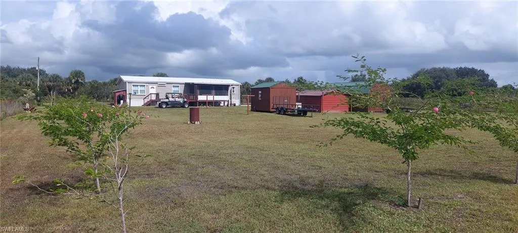 Viking Prairie Living at its best, this beautiful 2/2 with a 9×9 office and a 13×13 additional room used for a Den or extra Bedroom-no closet. This well maintained 2015 Manufactured home has many updated features including, new roof 2019, new metal skirting, front porch, driveway, dryer, back doors, finished inside small shed in 2025, new appliances dishwasher, refrigerator, stove, window blinds, front storm door in 2024, also has hurricane shutters. This parcel is located in the back of the Viking Prairie where the trails are close for off road vehicles, North view of pasture lands, no close neighbors, very quiet area. This parcel also has 3 Storage sheds 2 are equipped with electric and flooring and built in shelving, one has a double loft for extra storage, one has an RV Hook on the side ready for your guest, and one will fit your small vehicle or your toys for riding the trails. There is Mail delivery to this address, roads maintained by coquina water control, come take a look you won’t be disappointed!!!