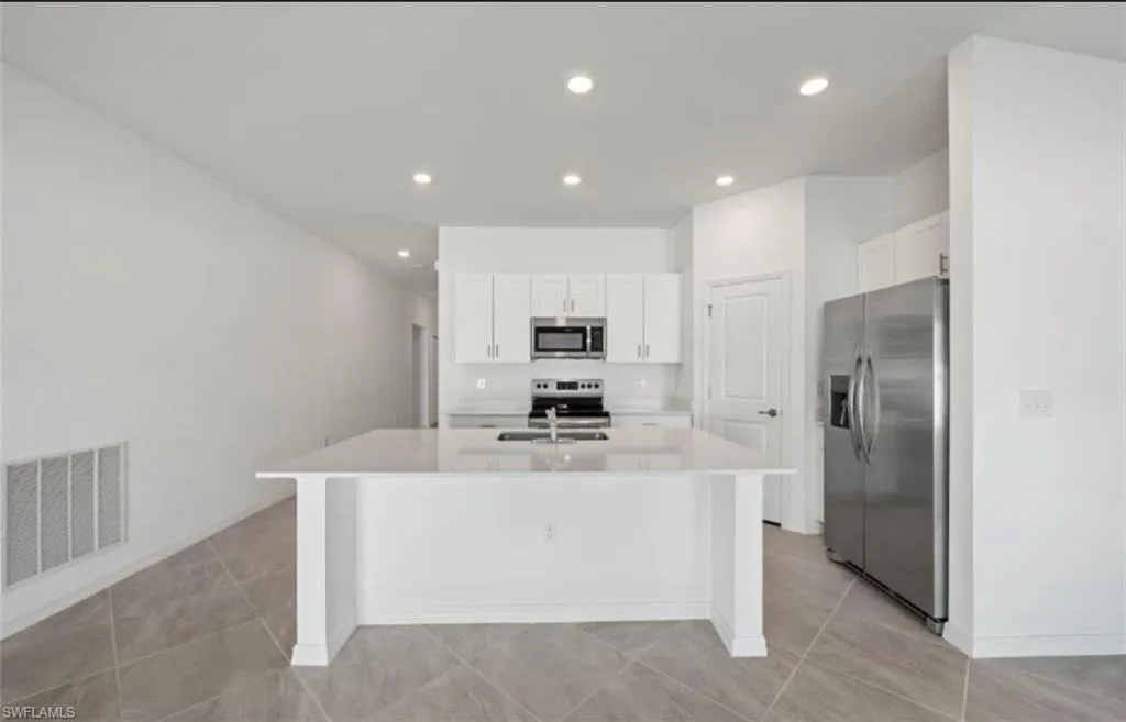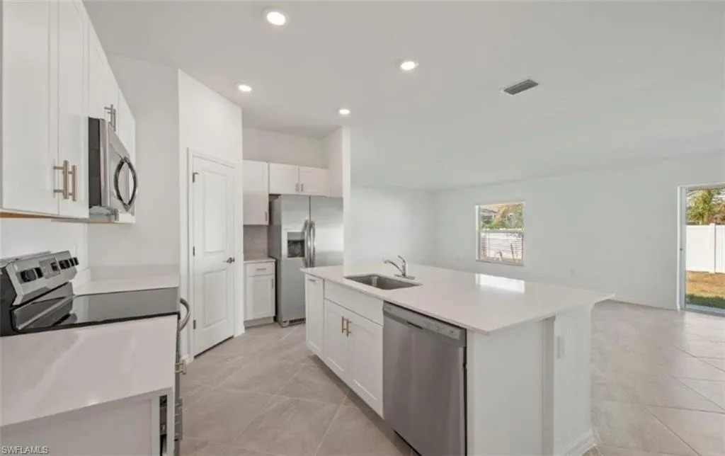 NO FLOOD ZONE! Step into effortless Florida living with this nearly new 3-bedroom, 2-bath home in NW Cape Coral. Designed with modern comfort in mind, its open-concept layout flows seamlessly from the kitchen’s sleek quartz island to the bright family room and cozy outdoor patio. Enjoy upgraded features like tiled showers, stainless steel appliances, and a spacious owner’s suite with a walk-in closet and dual-sink bath. With no HOA fees and easy access to Cape Coral’s growing shops and schools, this home perfectly blends style, value, and convenience. Priced to sell.
