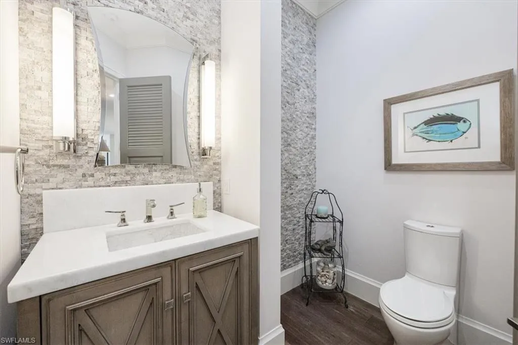 Boaters & Beach Lovers! Architecturally Stunning Home & Meticulously maintained! Breathtaking…. This is an exquisite and rare opportunity to own one of Barefoot Beaches limited waterfront properties with total privacy. This reimagined Florida Cupola-style home has been architecturally outfitted to stun. Located in the exclusive beachfront community of Southport @ Barefoot Beach and tucked away on a small cove this double gated, 24-hour secured property offers the epitome of luxury waterfront living. Its superb southeastern exposure and view across Little Hickory Bay provides an abundance of natural light during the day and is the perfect backdrop to this immaculately maintained property with the upmost high-end finishes throughout. This boater’s paradise has access to the Gulf of America through Wiggins Pass Marina and Gas dock where convenience is bliss before a day out cruising or fishing. The main living space features a great room with detailed craftsmanship and is incorporated into its 25-foot-high interior cupola. The main level has 3 bedrooms with two master suits, powder bath, dining room and laundry. The kitchen boasts GE Monogram appliances, including a 4-burner stove, griddle, grill, double oven, side-by-side refrigerator, and wine fridge. The lower level has 2 rooms with ample closets and 2 full bathrooms. They could easily be used as a home office, guest accommodations or gym and is easily accessible using an elevator or stairs. The expansive outdoor patio with 2 levels has a poolside dining area and outdoor bar that includes an integrated grill, oven warmer, dishwasher, refrigerator, and ice maker making it perfect for outdoor entertaining. This home also features a new dock and lift, oversized 3 car garage and deeded beach access walking distance to Barefoot Beach located at the north end of Collier County in Naples. Your quiet escape where Barefoot Beach meets Bonita Beach and is in the middle of the action from Naples to Ft. Myers with easy Airport access via I-75. The dock has a 40,000lb lift & room to expand!