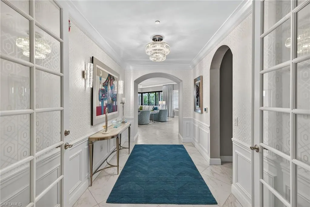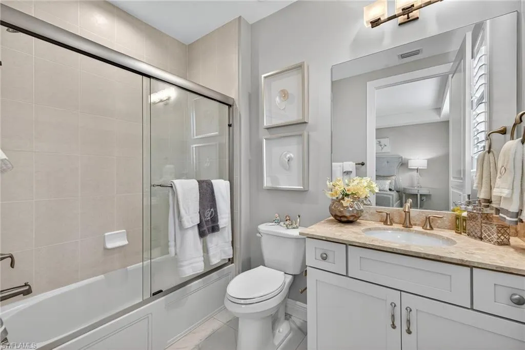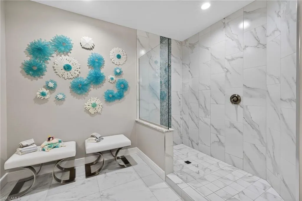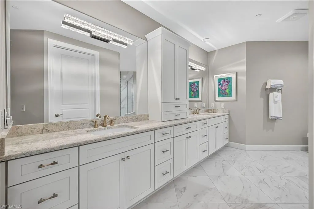 Experience resort style luxury living at Marquesa Royale, located just a short distance from The Ritz-Carlton Naples, Tiburon Golf Resort. This exquisitely REMODELED penthouse-style residence, has been masterfully designed and decorated, offering an exceptional blend of sophistication and comfort. The open-concept design invites natural light streaming throughout. Zero-corner sliding glass doors extend the living space seamlessly to the expansive lanai. Every detail has been thoughtfully curated, from the rich cabinetry and upgraded flooring, to the luxurious window treatments gracing every room. No design element was overlooked in creating this timeless, elegant home. Built in 2012, this residence showcases three spacious bedrooms, all with walk-in closets and ensuite baths. The generously sized den at 12×14 ft, adds additional space for both a private office and extra room for guests. Enjoy breathtaking views overlooking the 13th fairway of Tiburón’s renowned Gold Course. After a day at the beach or playing golf, stroll to The Ritz-Carlton to unwind with a beverage next to the outdoor fire pit. This property features, StormSmart storm screens to protect your lanai furniture and hurricane impact windows and sliders throughout. Other updates include; custom closet built-ins, newer high efficiency AC, and newer refrigerator. Residents of Marquesa Royale enjoy their own community pool and grills. Ideally located just steps from The Ritz-Carlton Hotel and Tiburon Golf Club, where residents enjoy the convenience of world-class amenities including 36 holes of championship golf, a full-service spa, state-of-the-art fitness center, tennis facilities, and multiple on-site dining venues. As the proud host venue of both the LPGA Tour Championship and the PGA TOUR’s QBE Shootout, Tiburón defines the ultimate golf and luxury lifestyle. MEMBERSHIPS ARE IMMEDIATELY AVAILABLE BUT NOT REQUIRED.