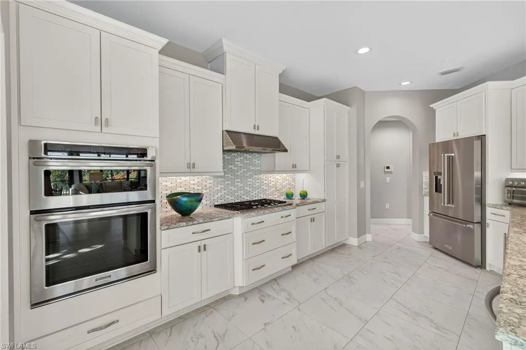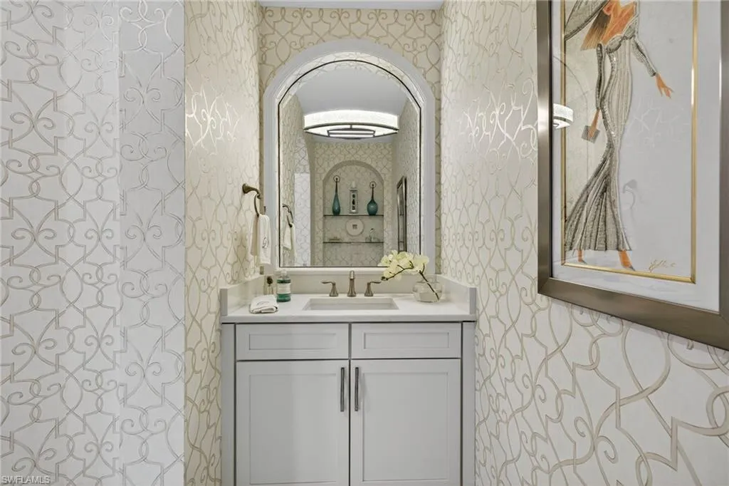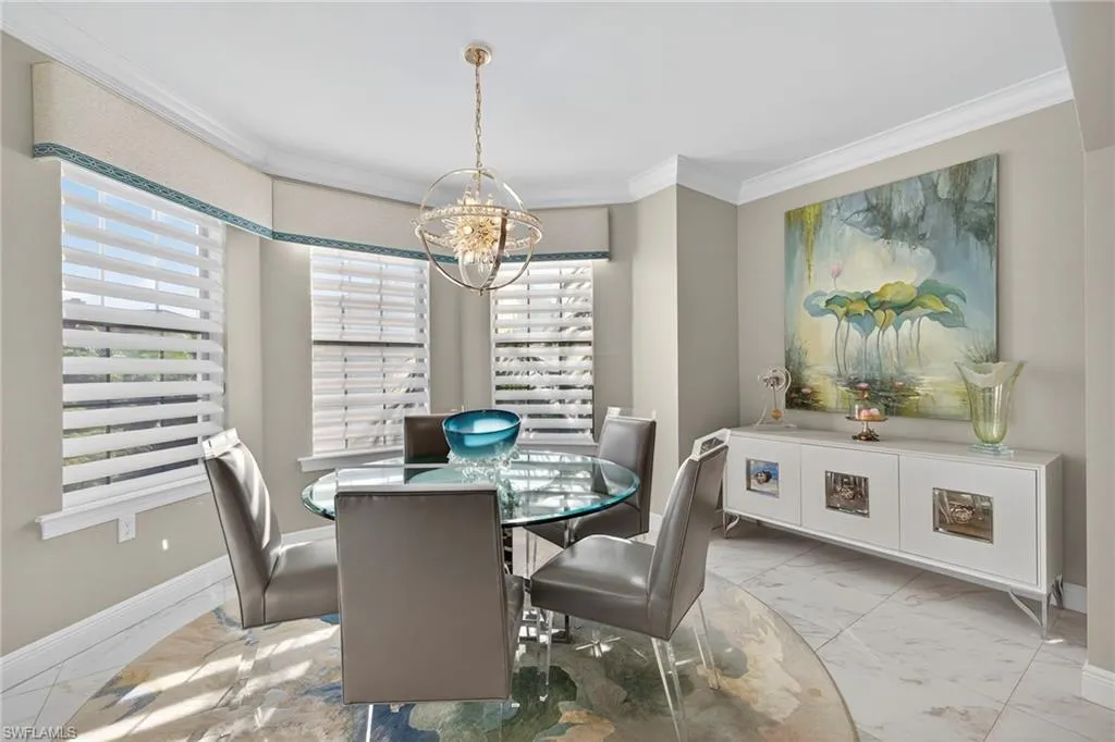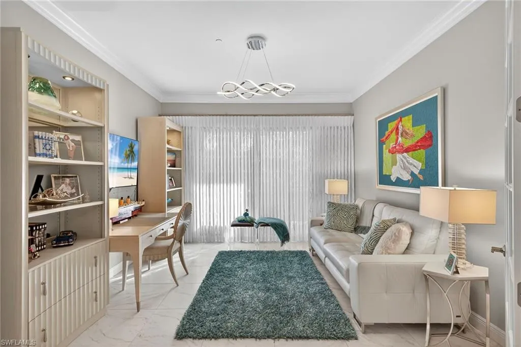 Experience resort style luxury living at Marquesa Royale, located just a short distance from The Ritz-Carlton Naples, Tiburon Golf Resort. This exquisitely REMODELED penthouse-style residence, has been masterfully designed and decorated, offering an exceptional blend of sophistication and comfort. The open-concept design invites natural light streaming throughout. Zero-corner sliding glass doors extend the living space seamlessly to the expansive lanai. Every detail has been thoughtfully curated, from the rich cabinetry and upgraded flooring, to the luxurious window treatments gracing every room. No design element was overlooked in creating this timeless, elegant home. Built in 2012, this residence showcases three spacious bedrooms, all with walk-in closets and ensuite baths. The generously sized den at 12×14 ft, adds additional space for both a private office and extra room for guests. Enjoy breathtaking views overlooking the 13th fairway of Tiburón’s renowned Gold Course. After a day at the beach or playing golf, stroll to The Ritz-Carlton to unwind with a beverage next to the outdoor fire pit. This property features, StormSmart storm screens to protect your lanai furniture and hurricane impact windows and sliders throughout. Other updates include; custom closet built-ins, newer high efficiency AC, and newer refrigerator. Residents of Marquesa Royale enjoy their own community pool and grills. Ideally located just steps from The Ritz-Carlton Hotel and Tiburon Golf Club, where residents enjoy the convenience of world-class amenities including 36 holes of championship golf, a full-service spa, state-of-the-art fitness center, tennis facilities, and multiple on-site dining venues. As the proud host venue of both the LPGA Tour Championship and the PGA TOUR’s QBE Shootout, Tiburón defines the ultimate golf and luxury lifestyle. MEMBERSHIPS ARE IMMEDIATELY AVAILABLE BUT NOT REQUIRED.