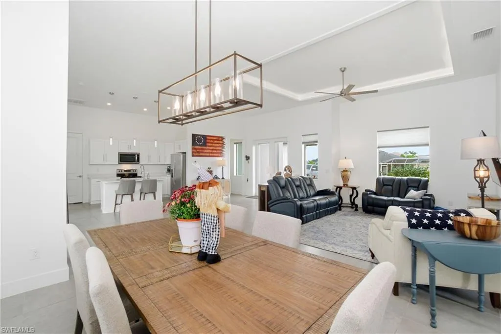 This immaculate home offers 1,927 sq. ft. under air (2,772 total) with soaring 9’4″–11’4″ ceilings, 8-ft doors throughout, and a grand double-door entry that opens to a bright, open-concept great room. The modern kitchen features white quartz countertops, soft-close white shaker cabinets, stainless steel appliances, and a large island perfect for entertaining. Stylish tile flooring flows throughout the living areas, complemented by plush carpeting in the bedrooms.