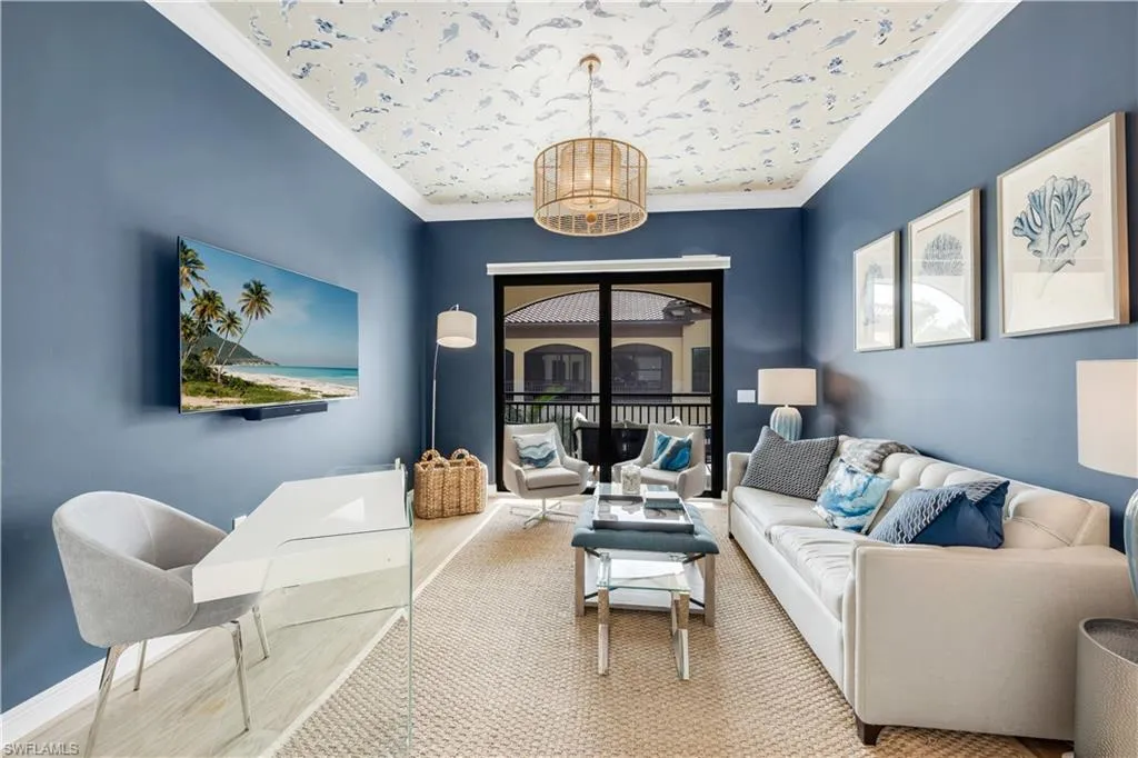 Esperanza at Tiburón – Professionally-Decorated Turnkey-Furnished Top-Floor Luxury Residence with Golf Membership Immediately Available. Experience refined Naples living in this beautifully updated and Clive Daniel-decorated penthouse-level residence in the sought-after Esperanza at Tiburón, home to the Ritz-Carlton Golf Resort and two Greg Norman–designed championship golf courses. This immaculate three-bedroom, three-and-a-half-bath end unit combines sophisticated design with serene privacy—no units above and panoramic preserve views that provide tranquility from sunrise to sunset. An inviting open-concept great room features soaring ceilings, custom millwork, high-end artwork and designer finishes throughout. The chef’s kitchen offers white cabinetry, matching quartz countertops, high-end appliances, and a spacious island perfect for casual dining or entertaining. A formal dining area flows seamlessly to the expansive screened lanai, an ideal retreat for morning coffee or relaxing evenings surrounded by a lush tropical backdrop. The primary suite serves as a private sanctuary with lanai access, a large custom-fitted walk-in closet, and a spa-inspired bath with dual vanities, soaking tub, and frameless glass shower. Two guest suites, each with its own ensuite bath and walk-in closet, ensure comfort and privacy, while the den with a private balcony provides flexible space for work or relaxation. Additional highlights include wood and tile flooring, designer lighting, plantation shutters, a private elevator that opens directly into the residence, and hurricane protection provided by impact glass windows and doors, as well as storm screens out on the patio. Under building garage with two assigned parking spaces and private storage room provide convenience and security. Offered turnkey furnished, the home showcases a curated collection of high-end pieces balancing sophistication and coastal warmth—move right in and enjoy the Tiburón lifestyle. Residents of Esperanza enjoy resort-style amenities including a tropical pool and spa, grilling area, and private clubhouse. Optional Tiburón Golf Club memberships provide access to 36 holes of world-class golf, tennis, fitness center with personal trainers, spa services, concierge, and dining. Owners also enjoy privileges at both Ritz-Carlton resorts and a private shuttle to the beach with chairs, umbrellas, and towels provided. Ideally located in North Naples, just minutes from Mercato, Waterside Shops, white-sand beaches, and downtown Naples, this top-floor corner residence offers exceptional natural light, breathtaking preserve vistas, and a rare sense of single-family privacy within one of Naples’ premier resort communities. Lives like a single-family home – penthouse privacy, resort amenities, and timeless elegance in the heart of Tiburón.