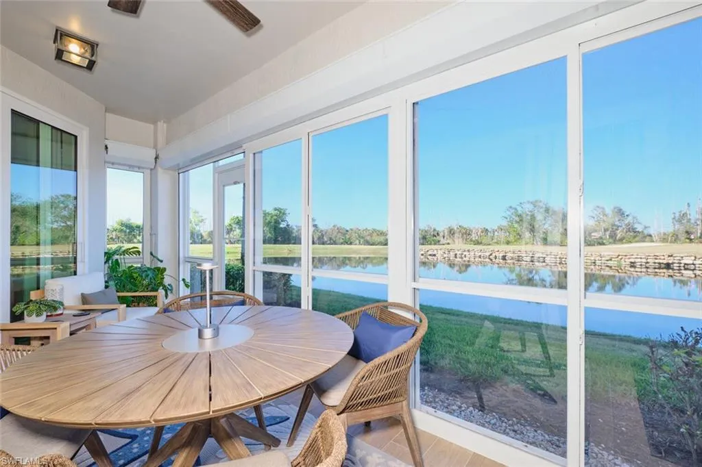 One of the best views in the Golf Village of Lexington Country Club. Overlooking a lake and the island green on Lexington’s signature hole #14.This 2 bedroom “Windsor” floor plan has Sunset views from the lanai. The lake offers not only an amazing view but it separates you from the golf course for added privacy. Bundled golf. This unit was totally remodeled in 2023. Loaded with upgrades. New cabinets in the kitchen & baths. New Acrylics sliders on the lanai. New sliders & windows throughout. Stainless Steel appliances. Quartz counters in the kitchen and baths. A/C was replaced in 2022. Electric storm shutters on the lanai & rear windows. Ceramic plank flooring everywhere but the bedrooms. Carpet in the bedrooms.Electric blinds on the living room sliders. New light fixtures & fans and so much more! Freshly painted with neutral calming colors throughout.
