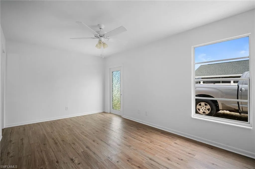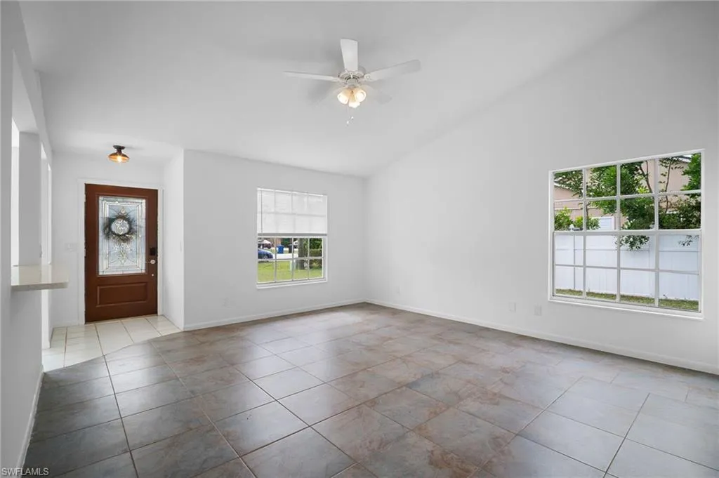 Welcome to 9283 San Carlos Blvd., in the sought after neighborhood of San Carlos Park. This cozy single-family home has 2 spacious bedrooms, 2 full bathrooms and a one car garage with plenty of additional parking for a large truck or work vehicles or RV alongside the stone parking area. This home is perfect for a growing family or for a profitable investment property. As you enter the foyer you will be greeted with a large family room with a cathedral ceiling which flows into the open kitchen featuring a brand new, sparkling quartz counter top and bar. Step outside to your own private oasis in a secluded screened in lanai overlooking a large fenced in back yard with plenty of room to expand or add a sparkling pool. The tile and laminate flooring make it an easy maintenance home. Don’t miss your chance to own this beautiful property in San Carlos Park located in a prime location, just minutes to I75, airport, shopping, restaurants… This home is sure to impress! Schedule a showing today and make this your forever home, “Make Your Move”