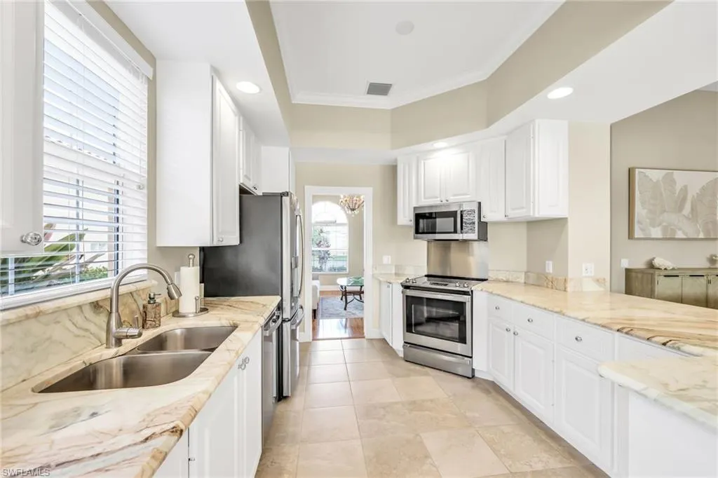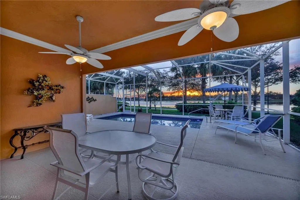 OAKMONT ON THE BIG LAKE LOCATION FACING WEST WITH A BRIDGE VIEW, 3 YEAR OLD ROOF, DESIRABLE SIDE LOAD GARAGE, CUSTOM QAURTZITE KITCHEN , CUSTOM WALL UNIT , FRESH PAINT , EXTENDED PORCELAIN TILE, WOOD FLOORING IN ALL BEDROOMS, NEW EPOXY GARAGE FLOOR,UPGRADED STAINLESS STEEL APPLIANCES. Don’t forget all of the features that you can not purchase with a new Divosta Home: 12 & 10 FT CEILINGS, Poured concrete walls, Smooth coat walls inside through-out, finished closets systems, 6 ft privacy wall ON BACK LANAI, central vac, Verona Walk offers 24 hr. guarded gated entry, lighted tennis, bocce ball, basketball and pickle ball courts, resort-size community Lagoon pool, lap pool, tot lot, over 20 miles trails, 24/7 gym, post office, café/restaurant, ice cream Shoppe, hair salon, car wash, gas station, library, computer center, ballroom, card rooms, and a full-time activities director. Convenient to both Naples and Marco Island beaches, shops and fine dining, regional hospital and Edison college nearby. The low HOA dues also include lawn care & irrigation, basic cable TV.
