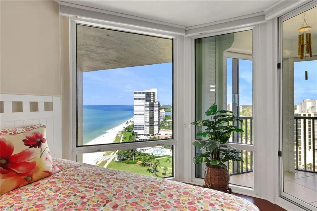 Vistas at Park Shore is a Gulf-front condominium directly on Naples’ beautiful Park Shore beach. A comfortable Penthouse residence, PH-6 has enviable views of the Gulf, the beach, and surrounding neighborhoods. And being on the top floor, there is never a sound from anyone living above you! With warm mahogany-tone wood flooring, an open living/dining area, split bedroom suites, and floor-to-ceiling sliding glass doors to the lanai balcony, PH-6 is a first-class home base to enjoy Naples’ beach, boating, golf, shopping, and dining experiences. Venetian Village just down Gulf Shore Blvd includes outstanding dining and shopping choices.