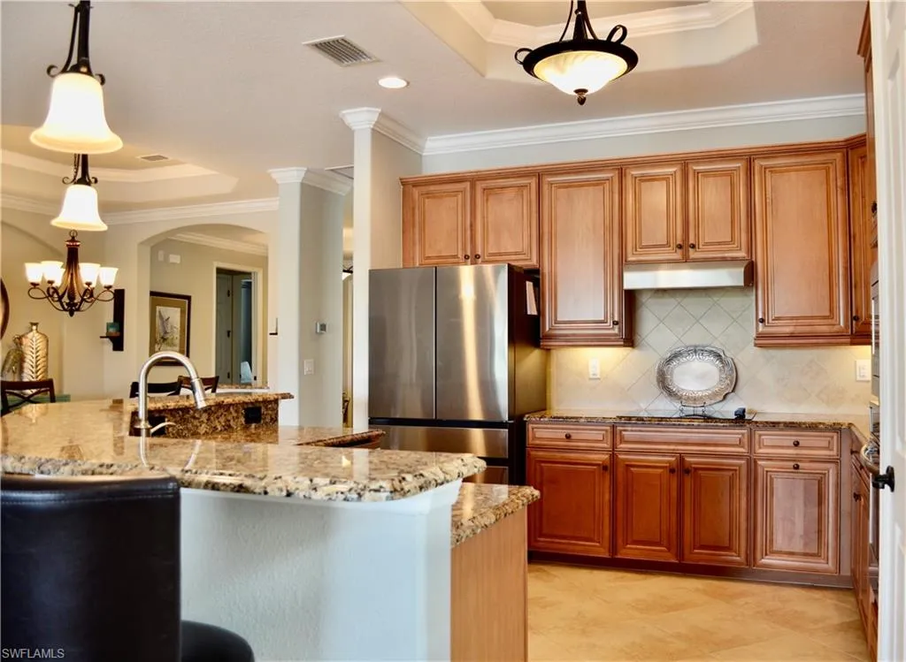 Enjoy full golf privileges immediately with a deeded GOLF membership—no waiting list! Designed for both luxury and comfort, this meticulously maintained residence features numerous upgrades, including Storm Smart hurricane screens, Woodpecker Proofing, a new Trane A/C and heater with Wi-Fi connection and temperature control, and a newer refrigerator and dishwasher.