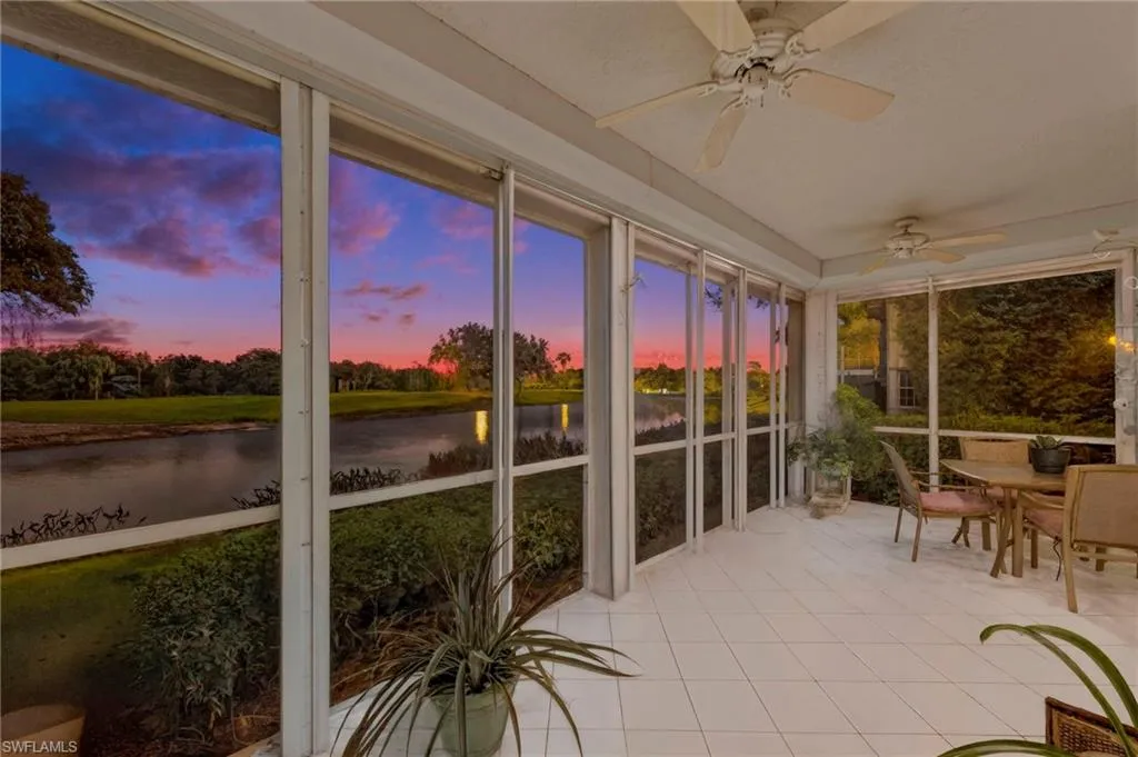 Welcome to 8291 Grand Palm Dr, Unit 4 — a beautifully maintained first-floor condo in the desirable gated community of The Vines at Estero. This bright and spacious floorplan offers 2 bedrooms plus a den, 2 baths, and over 1,400 sq. ft. of living space with an open great-room that seamlessly blends the living, dining, and kitchen areas, perfect for entertaining or relaxing in style. The kitchen features granite countertops, generous cabinetry, and a breakfast bar. Step outside to the expansive L-shaped screened lanai with roll-down electric shutters and take in the wide lake views framed by lush green fairways. With no buildings across the water, you’ll enjoy peaceful golf course scenery and unobstructed sunsets. Offered turnkey furnished, this home is ready for immediate enjoyment. The primary suite features dual vanities, a soaking tub, and a separate shower, while the private guest suite ensures comfort for visitors. Additional highlights include an oversized two-car garage, updated exteriors including roofs, and low-maintenance living. Residents of The Vines enjoy access to Estero Country Club’s championship golf, tennis, pickleball, fitness, dining, and a vibrant social calendar. Golf memberships are optional with no waitlist for new members. Ideally located just minutes from RSW Airport, Coconut Point Mall, FGCU, Hertz Arena, and a short drive to Southwest Florida’s renowned beaches.