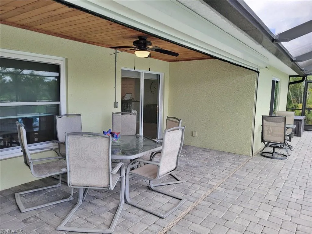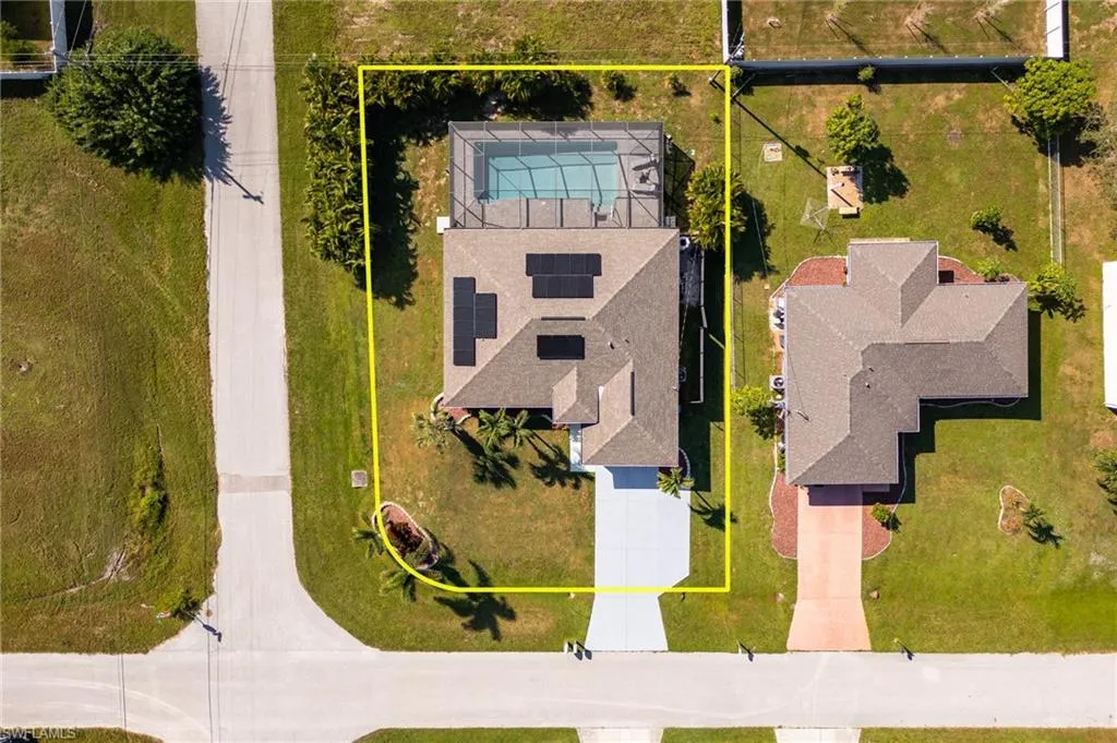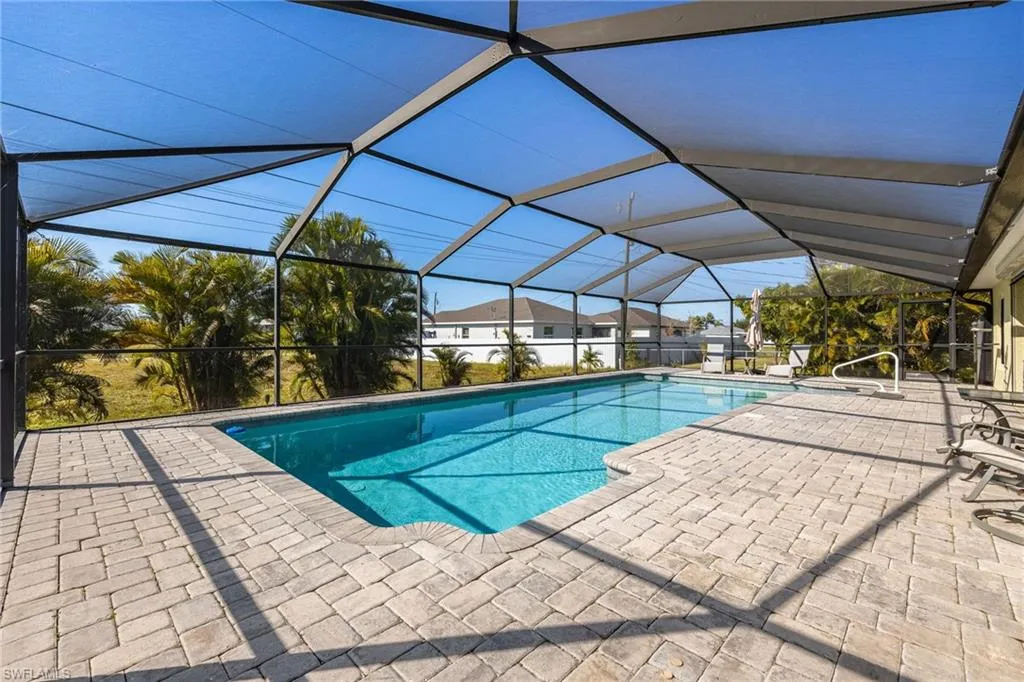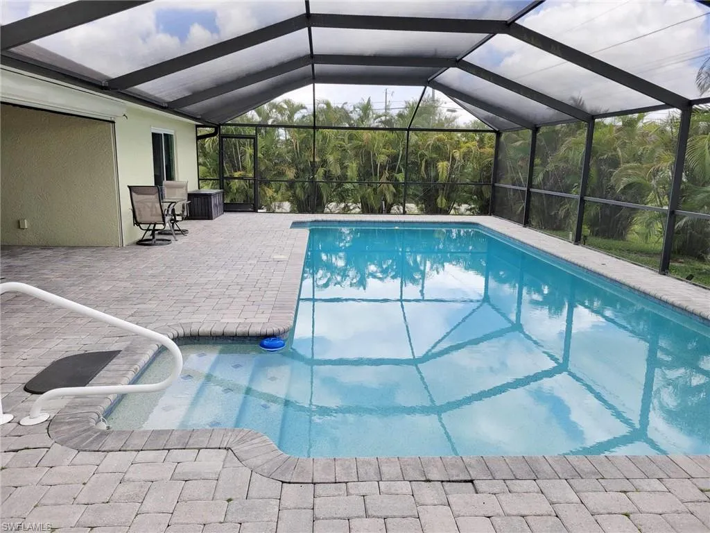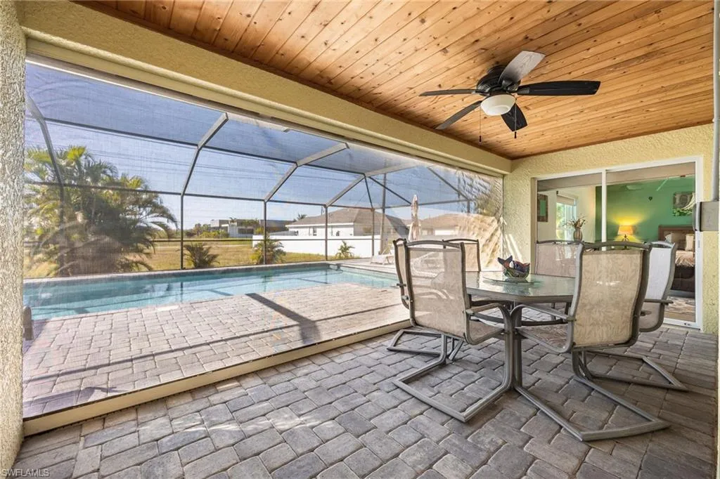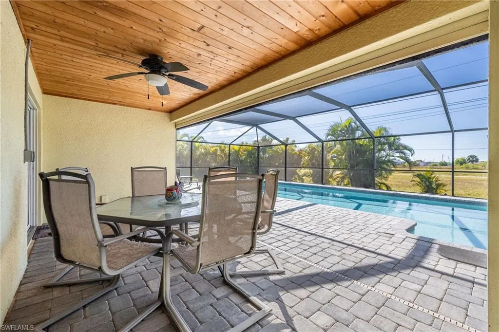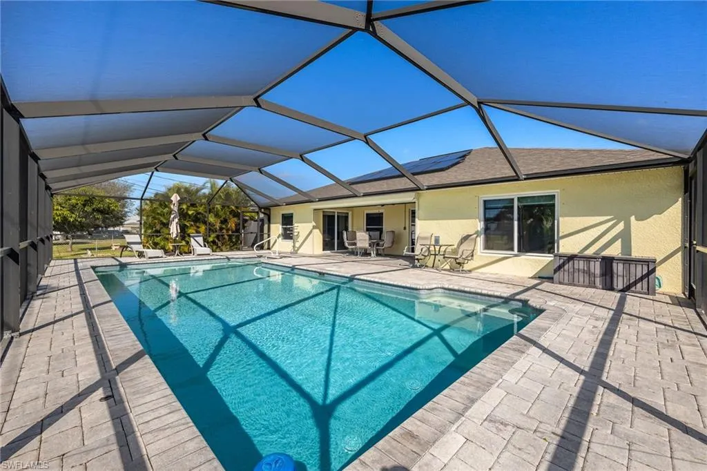 Beautiful, Well-Maintained Pool Home on an Oversized Corner Lot! This stunning 3-bedroom, 2-bath home offers over 1,800 sq. ft. of comfortable living space and is filled with upgrades — plus No Flood Insurance Required! With cathedral ceilings, tile flooring throughout, and being sold turnkey furnished, this home is truly move-in ready. The welcoming great room is perfect for entertaining friends and family, while the kitchen will delight any chef with its black stainless steel appliances, granite countertops, and large island with breakfast bar. There’s even a formal dining space for more intimate dinners. The spacious primary suite is a relaxing retreat featuring sliding glass doors to the lanai, a generous walk-in closet, and a recently remodeled en suite bathroom with dual sinks and a large shower. Two additional bedrooms and a stylish guest bathroom with a tub/shower combination provide plenty of room for guests or family. Step outside and enjoy the Florida lifestyle! Entertain in style on the screened lanai with its beautiful cedar wood ceiling and electric hurricane screen for privacy and protection or take a dip in the impressive heated 14 x 36 pool. Upgrades include a Whole Home Reverse Osmosis system, Impact-resistant windows (2025), Custom blinds (2025), New roof (2022), Water heater (2023) & Solar panels (paid-in-full) (2023) with an average electric bill of just $30/month! This home combines comfort, style, and efficiency — ready for you to enjoy the very best of Florida living!