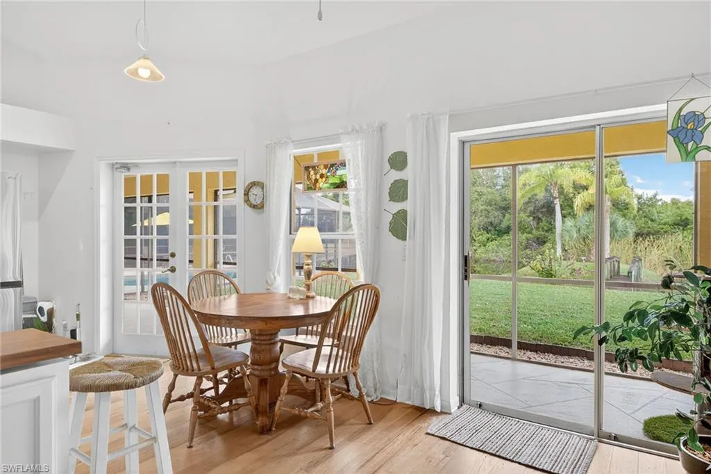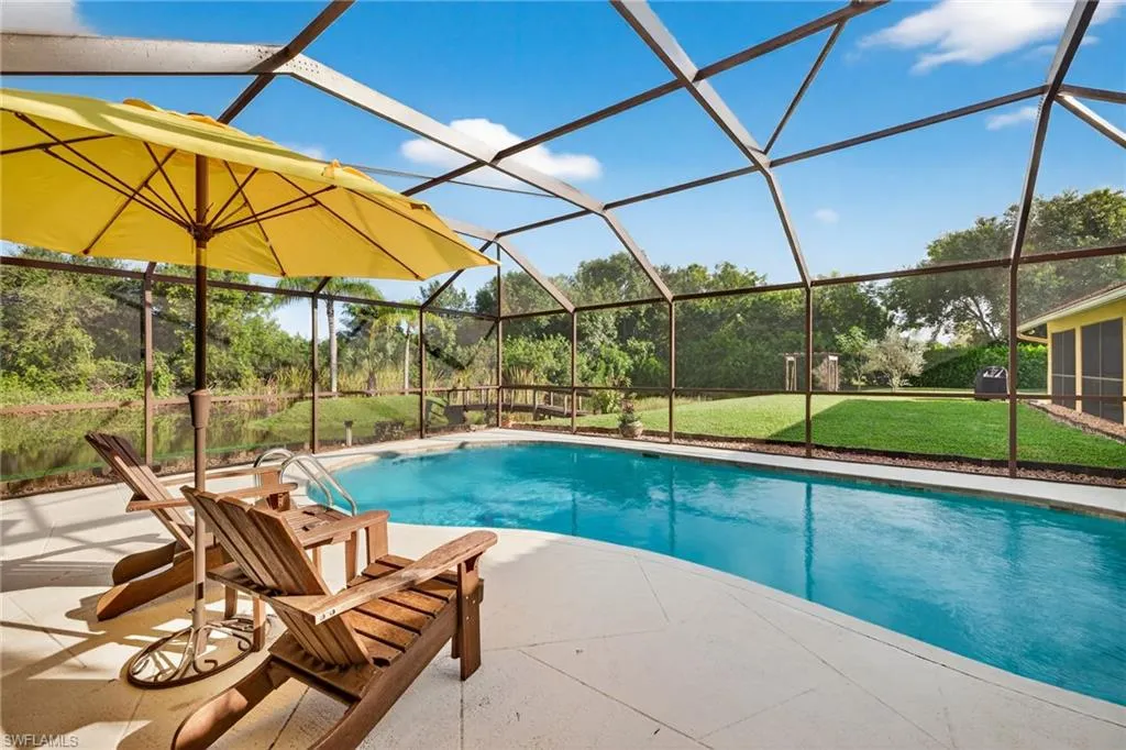 CAPTIVATING CASALS!! With its beautiful interior finishes, inviting private swimming pool, large 1.1 acre property and stunning lake with foot bridge and island, this home is sure to captivate you!!! Features of this beautiful home include soaring tall ceilings, lake views from nearly every room, new engineered wood floors throughout with cozy carpets in the bedrooms, updated grande kitchen with GORGEOUSLY UNIQUE HICKORY WOOD CONTERTOPS, gas range, stainless steel appliances and tiled backsplash; open concept family room with tall ceilings and tons of natural light, separate living room perfect for entertaining, beautiful master bedroom suite with fully remodeled en-suite bathroom featuring dual sink vanity and huge walk-in- shower with frameless glass enclosure, freshly renovated guest bathroom with new vanity and much more!! Additional features include, plantation shutters and/or custom window treatments throughout, upgraded fans and light fixtures, WHOLE HOUSE GENERATOR (2019), NEW AC (2021), NEW ROOF (2017), NEW POOL FINISH (2 to 3 years ago) and more!! Outdoors enjoy a super big circular driveway for plenty of parking, a large covered/trussed lanai for outdoor dining and entertaining, majestic solar and electric heated pool with peaceful views of the lake, fully irrigated lawn sourced from reclaimed water, 1.1 acre lot including a private foot bridge to your own little island, 500 gallon buried propane tank, and so much more!! Home is located in Bell Villa, a wonderful “hidden gem” community of custom homes on large lots that is both gated and guarded. Close proximity to the area’s best shopping, dining, entertainment, Downtown Bonita Springs and white sand beaches!! Also, residents enjoy an optional amenity membership at Bonita Terra for only $400 per year which includes, 4 pools including a lap pool, pickleball, planned activities, events, gym, billiards, golf driving range, 10,000 sq. ft clubhouse, shuffleboard and more!! This property is priced to sell and offers a standout value opportunity!! Call for your private showing today!!