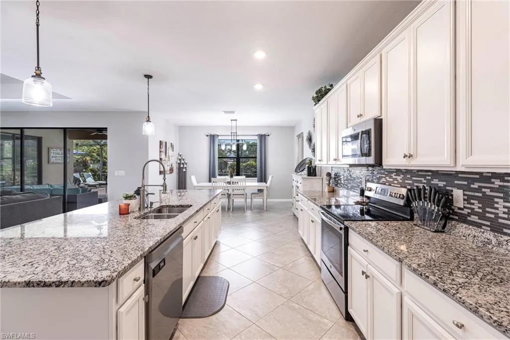 GREAT BUYING OPPORTUNITY!! STUNNING POOL RESIDENCE W/ FULLY FENCED-IN BACKYARD (IDEAL FOR DOGS) AND GORGEOUS LAKE + NATURE VIEWS! BEAUTIFUL SUMMERVILLE MODEL BY LENNAR W/3-CAR GARAGE AND A LONG LIST OF UPGRADES INCL. NEW A/C (2024)! Furniture is negotiable. This gem is ready for you to move-in + enjoy your very own piece of SW Florida paradise! Welcome to this well-maintained, modern smart home, feat. an inviting foyer w/double glass insert entry doors for lots of natural light, 3 bedrooms, 3 bathrooms, an extra den/office, a 3-car garage and a long paver driveway, located on an oversized lake view lot in the popular Portico community in Fort Myers! GREAT BUYING OPPORTUNITY, builder is sold out of 3-car garage homes in Portico! OPEN FLOOR PLAN, perfect for family living and entertaining. The heart of the home is an expansive great room w/tall glass sliding doors, leading to the covered lanai area. The living room w tray ceiling seamlessly connects with the spacious formal dining area and the gourmet kitchen, which features white cabinets, granite countertops, a large island, upgraded stainless-steel appliances + a walk-in pantry. The luxurious owner’s suite has tray ceiling, sliding doors for direct lanai access, two large walk-in closets and an ensuite bathroom w/dual vanities, soaking tub and walk-in shower. Two additional bedrooms, each with own private bathroom, are generously sized, offering flexibility for guests, or a hobby room. Especially if you’re working from home, you will love the separate den w/French Doors. A laundry room w/sink is also located inside the residence, for your convenience. Outdoor living is a delight in this home, with a spacious covered lanai area that overlooks the extended, fully screened-in pool deck and your beautiful, HEATED POOL! Enjoy magic sunrises and swimming + splashing fun all year round in your new private outdoor oasis! This amazing property has MANY FURTHER VALUABLE UPGRADES, which are YOUR GAIN! Those Upgrades include a professionally installed aluminum fence all around the backyard, custom closet systems throughout, NEW A/C (2024), NEW washer + dryer, NEW dishwasher, a custom entertainment wall/center in the living room, upgraded carpet in bedrooms + den, upgraded interior paint, upscale light fixtures + multiple designer ceiling fans w/lights (incl. lanai), garage w/epoxy floor + built-in storage, additional landscaping + more. Start packing and get ready to enjoy a truly laid-back lifestyle in your new pool home in sunny SW Florida! NO FLOOD INSURANCE REQUIRED! PORTICO is a highly sought-after access-controlled community w/Low HOA fees. Residents enjoy resort-style amenities, including a clubhouse, community pool, gym, yoga/exercise room, tennis, pickleball, basketball + play area. Pets, Fences & LSVs permitted! Great location, short drive to I-75, shopping, dining & more!