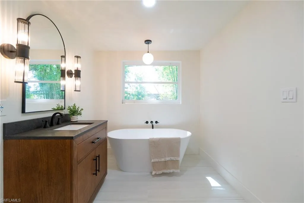 Step into timeless Fort Myers charm, just 4min from Downtown Fort Myers. Nestled in the highly sought after Historic Edison Park District, FULLY RENOVATED home blends mid-century design character with modern comfort. Inside, you’ll find 3 spacious bedrooms plus a versatile den, perfect for a home office or playroom. The luxury spa-inspired primary bathroom feels like a private retreat complete with a soaking tub and a separate large shower. Enjoy cooking in this uniquely designed updated kitchen featuring quartz countertops, stainless steal appliances and a clean open layout that flows seamlessly to a breakfast nook and screened in lanai. Outside there is plenty of room for a pool surrounded by mature landscaping. With a brand NEW ROOF 2025, upgraded finishes and a location minutes from shopping and the riverfront. This home offers unbeatable value in one of Fort Myers most beloved neighborhoods. Move-in Ready. Immaculate. ideally located Welcome home to Edison Park.
