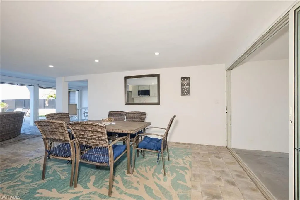 Wake up to a million-dollar view without fighting island traffic. This gorgeous 5-bedroom, 3-bath home offers all the charm of Fort Myers Beach living — just across the bridge, where life feels easier, breezier, and perfectly relaxed. Boaters will love the private dock and covered lift (rebuilt in 2018 with electricity), ready for days spent exploring the Gulf. The in-ground pool overlooks wide open water with views that stretch all the way to the beach — it’s the kind of backdrop that makes every sunset feel like a celebration. Inside, you’ll find an open-concept layout with stainless steel appliances and panoramic water views from the main living area. Elevated on pilons for peace of mind, this home features impact-resistant windows and doors plus brand-new Storm Smart roll-down screens (2024) — so you can enjoy carefree coastal living, even through storm season. The lower level has been transformed into a casual second living space with an open-air kitchen and elevator — perfect for entertaining, guests, or creating separate rental potential. With its flexible layout and unbeatable location, this home is ideal for an investor, snowbird, family, or Airbnb host looking for strong rental appeal. Just over a mile to the beach, close to shopping, dining, Route 41, and only 20 miles to RSW International Airport — this is truly the best of Fort Myers Beach living, without compromise.