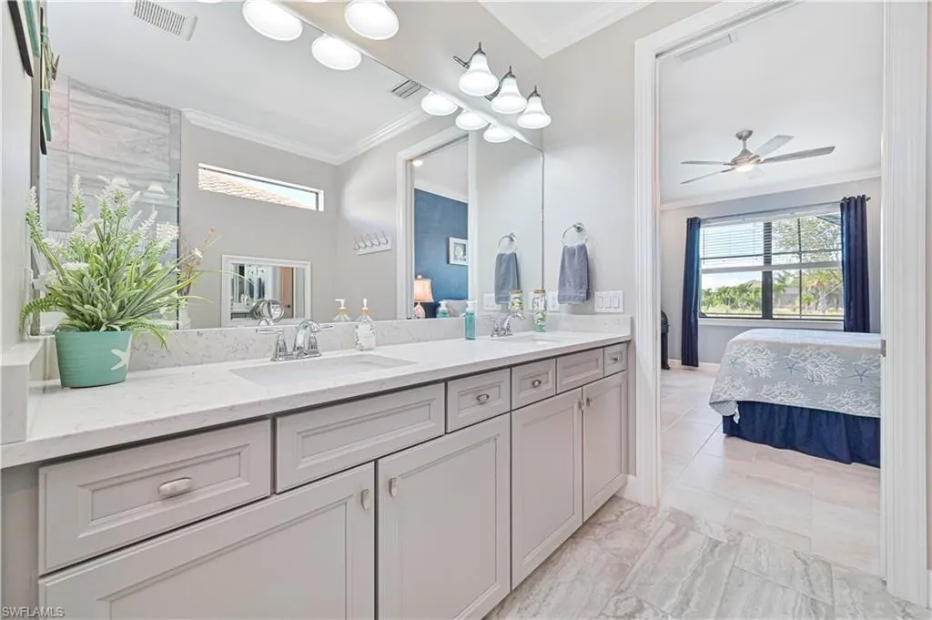 Beautiful Summerwood Model with Saltwater Pool in The Place at Corkscrew. Welcome to your dream home in the highly sought-after community of The Place at Corkscrew! This stunning Summerwood model offers 3 bedrooms, 2 bathrooms, and a perfect blend of luxury, comfort, and resort-style living. Step inside to discover elegant leather granite countertops, crown molding, and beautiful tile flooring throughout. The upgraded kitchen showcases an extended island with cabinets on both sides, custom pantry shelving, and plenty of space for entertaining. The master suite features a custom closet organizer, while the laundry room includes built-in cabinets for added storage and convenience. Enjoy the Florida lifestyle outdoors with a sparkling saltwater pool, a covered large lanai extension, Storm Smart remote shutters, and plumbing for a future outdoor kitchen. The zero-corner sliding doors create seamless indoor-outdoor flow, ideal for relaxing or entertaining. Additional highlights include Ring cameras for added security, a generator hookup compatible with up to a 16,000-watt whole house portable generator, an extended garage, and a whole-home surge protector. Residents of The Place at Corkscrew enjoy world-class amenities including an indoor/outdoor restaurant and bar, café, two-story fitness center, resort-style pool and spa, splash pad, pickleball, tennis, bocce, and basketball courts, playgrounds, and a dog park. With low HOA fees, no flood zone, and a prime location near shopping, dining, RSW Airport, FGCU, and the beaches, this community offers the best of Southwest Florida living. Ring cameras are included, and furnishings are negotiable. Don’t miss your chance to own this exceptional Summerwood model — schedule your private showing today!