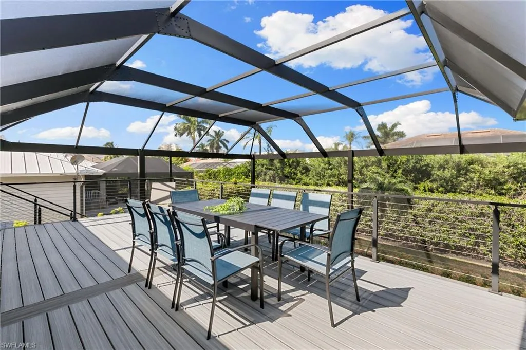 Welcome to your Marco Island beach retreat! Featuring over 2,500 A/C sq. ft., this elevated coastal pool home with a metal roof offers an ideal blend of lifestyle, walkability, and strong short-term rental potential. The floor plan includes 4 bedrooms and 3 full bathrooms, highlighted by a private primary suite with its own balcony and a generous mini-suite for guests. An oversized open den provides versatile space for entertaining, a media area, home office, or lounge, while the expansive deck is perfect for al fresco dining and enjoying the coastal breeze.