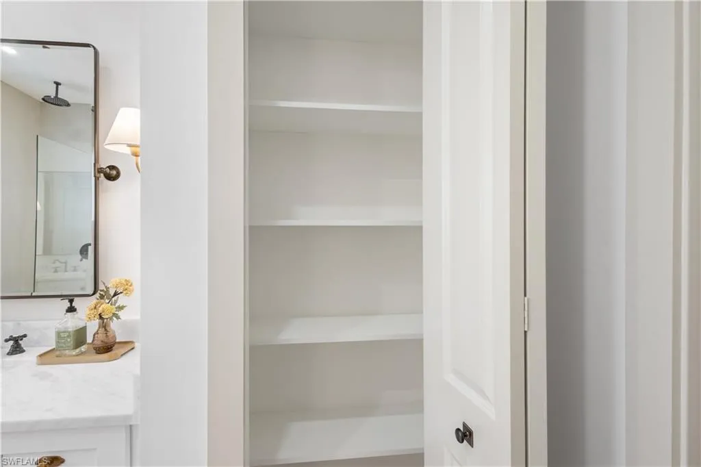 You’ll find built-in shelving in every closet — including pantry and linen spaces, so storage is both functional and beautiful. This home also features impact-resistant windows and doors, a tankless water heater, and a reverse osmosis water system, combining peace of mind