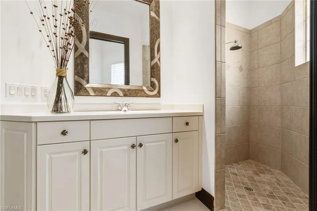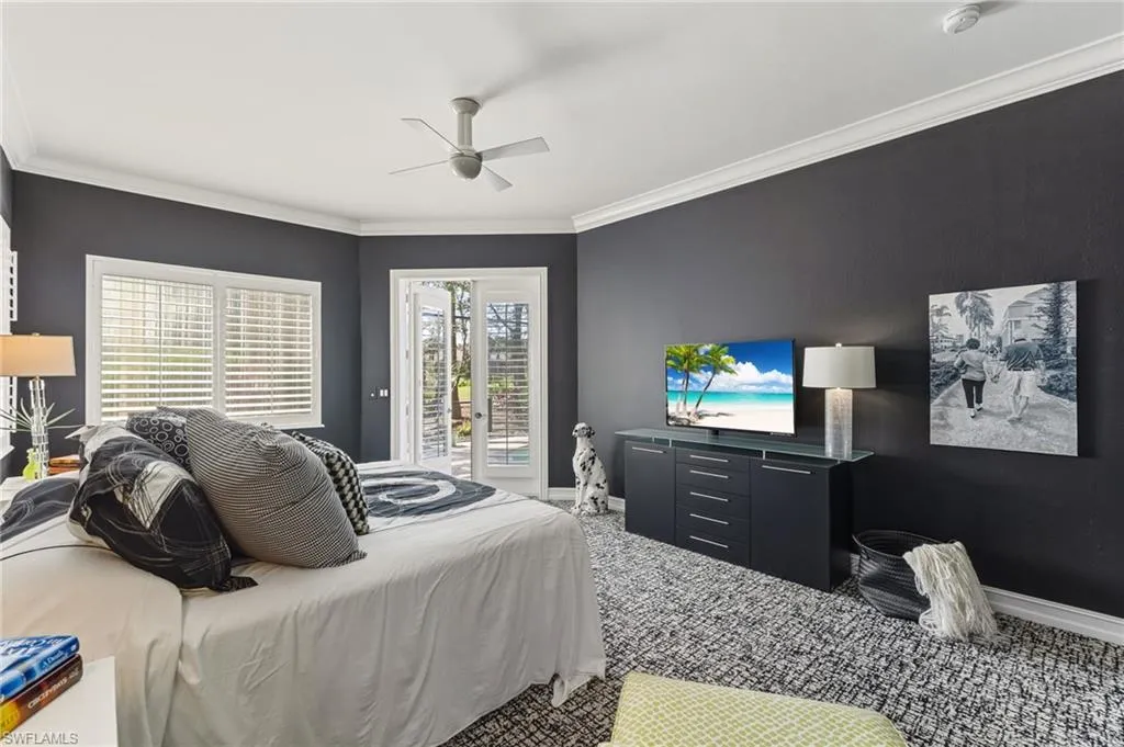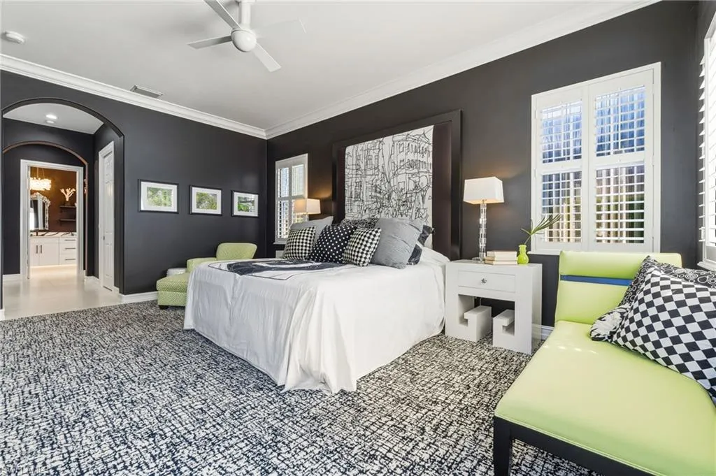 Glamour Meets Whimsy….A Bold Art Deco Retreat -Nestled within the popular Villa Grande community of Grandezza Country Club, this exquisite home combines vibrant design elements with natural harmony in a tropical setting. From the moment you step into this 3-bedroom, 3- bathroom home with a versatile den, it unveils a lifestyle of comfort and brilliantly selected color accents. This home views the signature 6th hole creating a captivating backdrop. The living spaces are adorned with custom finishes that showcase the home’s bold personality. The thoughtfully designed custom-renovated kitchen is where form meets flawless harmony with sleek soft-close drawers, custom pull-out cabinetry for effortless organization, quartz countertops and high-end appliances that make cooking an elevated culinary experience. The primary suite offers a custom-designed space where water views greet you each morning and serenity flows into the beautifully renovated functional bathroom, complete with sleek glass-enclosed shower to elevate your daily rituals with great comfort. Enjoy the southwest facing screened pool and entertainment oasis designed for effortless indoor-outdoor year-round relaxation. This meticulously maintained turnkey 3 -car garage home is move-in ready! Grandezza Country Club is known for it’s friendly atmosphere, premier 18-hole Championship Golf Course, tennis courts, cabana, Olympic size pool, fitness/wellness center, fine/causal dining and a host of social activities and amenities. Minutes from I-75, SWFL International Airport, FGCU, shopping and restaurants, this home is ideally located in booming Estero, FL.