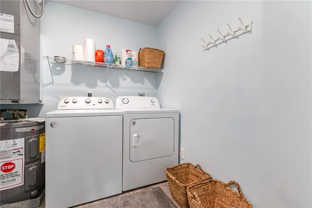 One year home warranty now in place for this property! This sunny, second floor two bedroom, two bath condo with eastern exposure is not one to be missed! The lovely sunrise view helps start your day with an easy and relaxing vibe. Bright coastal design and decor flow throughout the entire condo, being offered turnkey furnished and includes a private garage! Tasteful upgrades throughout include new luxury vinyl plank flooring, solid wood plantation shutters throughout and brand new tile on the lanai. Clean, white kitchen has custom hardware on the cabinets and lots of counter space. You’ll be conveniently located to Naples’ award winning beaches, restaurants, amazing shopping and just a short drive to Marco Island. Just turn the key and start living the Florida lifestyle in paradise!