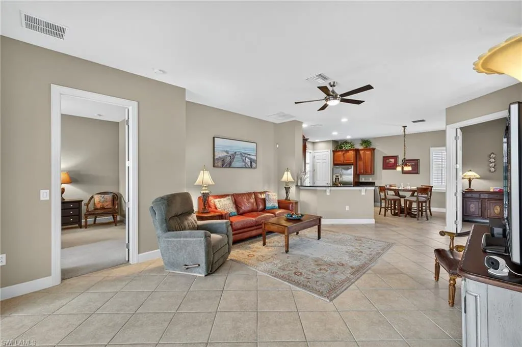 Welcome to this spacious and tastefully FURNISHED villa in the highly sought-after community of Bridgetown. With 3 bedrooms plus a den and 1,813 sq. ft. of living space, this home is designed for comfort and style — and your family and friends will love to visit! Step through the front door and take in the sunlight streaming through the open-concept living, kitchen, and dining areas. The den with French doors offers flexibility as additional dining space or an office for those who work from home or simply want a quiet space to unwind. The chef’s kitchen features an island, pantry, granite countertops, and upgraded cabinetry — ideal for entertaining or casual family meals. From there, your eyes are drawn to the extended lanai with a private pool and gorgeous lake views, creating the perfect backdrop for relaxing or hosting guests. The primary suite offers serene lake views, abundant natural light, and plenty of room to spread out. The ensuite bath includes a soaking tub, separate shower, and a large walk-in closet. Two spacious guest bedrooms and a full bath on the opposite side of the home provide privacy and comfort for visitors. At Bridgetown, resort-style living is part of everyday life. Enjoy two community pools — one chilled lap pool and one resort-style pool with a spa, plus a state-of-the-art fitness center, pickleball, tennis, bocce, and a play area. Gather with neighbors at the clubhouse, BBQ/fire pit area, or tiki bar, and experience the warm, welcoming Bridgetown lifestyle. Don’t miss this opportunity to own a beautiful furnished villa in one of Southwest Florida’s most desirable communities. Schedule your private showing today!