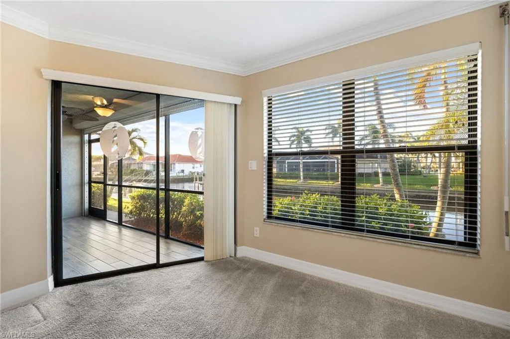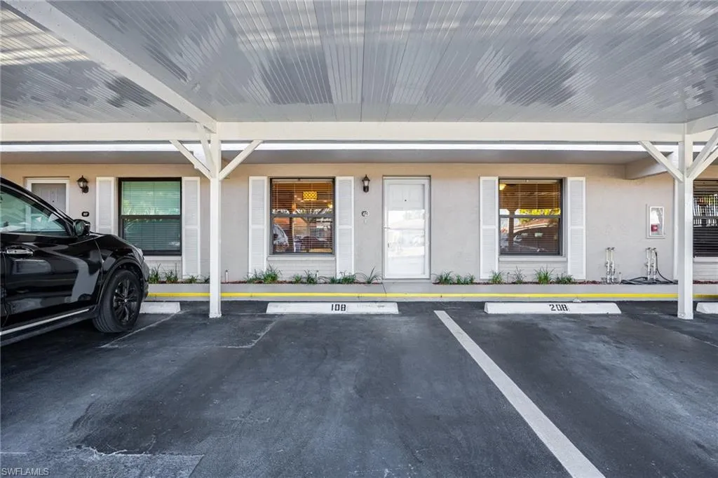 Welcome to Dockside Condos, an exclusive, 20-unit community offering direct Gulf access with no bridges—a true boater’s paradise! This first-floor, two-bedroom, two-bath condo features a southern exposure, providing plenty of natural light and beautiful Florida warmth year-round. Inside, you’ll love the spacious split-floor plan, with tile flooring in entertaining areas and cozy carpet in the bedrooms. The kitchen boasts granite countertops, stainless steel appliances, and crown molding, adding a touch of elegance. For convenience, a washer and dryer are included inside the unit. Step outside and enjoy all the community amenities just steps from your door, including a pool, spa, gazebo, and grills. There’s even an extra storage locker for your beach gear or bikes. A covered carport is right out front for easy access. Love boating or fishing? Bring your boat and tie up at the community dock or cast a line right from the pier! Plus, with a new roof, no assessments, and NO water damage to this unit, this well-maintained property is move-in ready. The exterior of the building has been significantly upgraded with new lighting, fresh paint, replacement of exterior shut-off valves, installation of new dock lights, and a renovation of the storage sheds featuring durable Hardie board siding. Don’t miss this rare opportunity to own a slice of paradise in this active Gulf-access community! Flood insurance is included in the association dues. Conveniently located near Cape Coral Pkwy close to restaurants, shops & more.