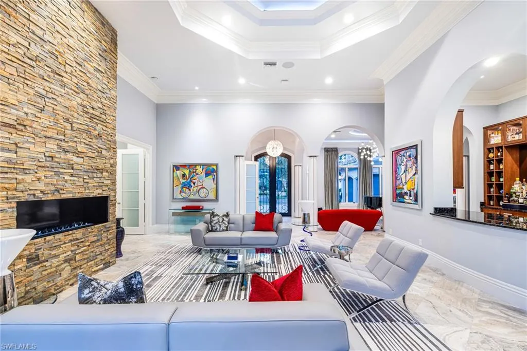Welcome home to this inviting and beautifully refined West Bay Club residence, where every detail has been designed for comfort, elegance, and effortless living. Every inch of this home showcases thoughtful design, exceptional craftsmanship, and high-end finishes chosen with care to create a seamless balance of style and function. The roof is newer, while the impact-resistant windows add peace of mind and enhance the home’s timeless appeal. Inside, the open and inviting layout reveals custom features throughout—from the striking stone fireplace and built-ins to upgraded flooring, baseboards, and designer lighting. The gourmet kitchen is a true centerpiece, boasting Wolf appliances, dual dishwashers, a Sub-Zero refrigerator, and a “True” wine storage center with an accompanying bar and ice maker—ideal for entertaining with style. Modern conveniences blend effortlessly with elegance through whole-home Wi-Fi, surround sound, and a Lennox five-stage AC system paired with efficient water heaters for year-round comfort. The outdoor area is equally impressive, featuring updated coping around the sparkling pool, a pool heater, and freshly painted interior and exterior spaces that exude pride of ownership. The primary suite is a serene retreat with blackout shades, a spacious walk-in closet, and a spa-quality bath featuring a jetted soaking tub and custom multi-head shower designed to rejuvenate the senses. Every upgrade reflects meticulous attention to detail and enduring quality. Privately positioned at the end of a peaceful cul-de-sac, this residence offers both tranquility and prestige within the exclusive West Bay Club community, where residents enjoy world-class amenities including a private Beach Club on the Gulf of Mexico, championship golf with optional membership, tennis, pickleball, a boat ramp with direct Gulf access, a resort-style pool and spa, fitness center, and an elegant clubhouse with fine and casual dining options. Located just east of US-41 and minutes from Coconut Point, Miromar Outlets, Hertz Arena, FGCU, and RSW International Airport, this home embodies refined living in one of Estero’s most desirable settings.