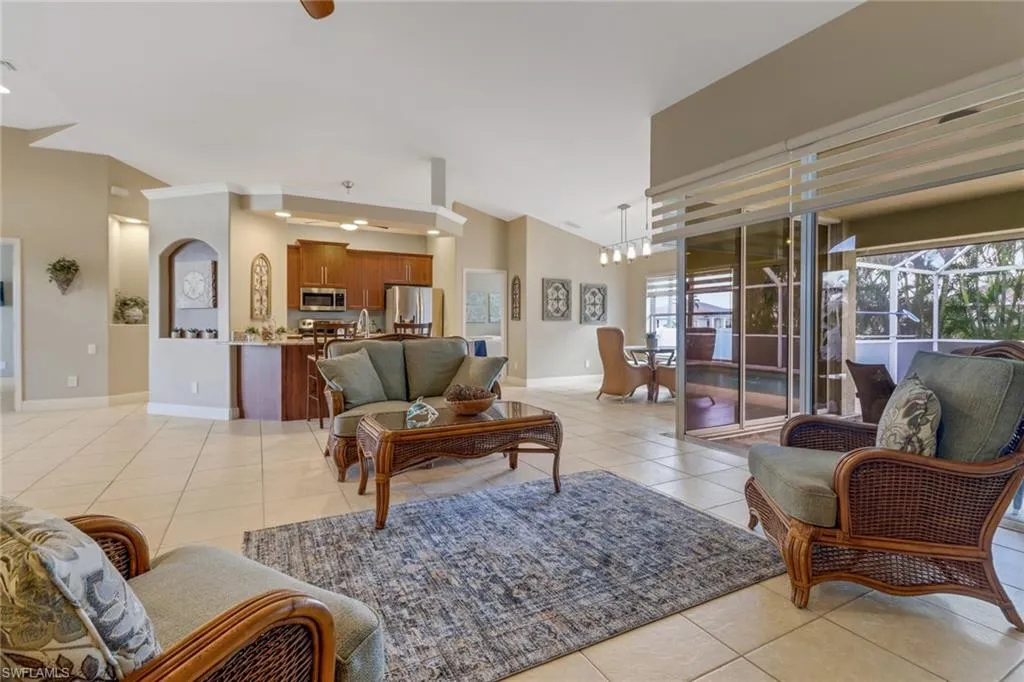 NEWLY AVAILABLE UNFURNISHED SINGLE FAMILY HOME ANNUAL RENTAL IN SOUTWEST CAPE CORAL! Well-maintained, spacious home with private saltwater pool and generously sized screened lanai offers 3 bedrooms plus a den, 2 full baths, separate dining area, laundry room, fully fenced backyard and a 2-car attached garage on an oversized corner lot. Tile flooring throughout, granite counter tops and stainless-steel appliances. The master ensuite bath offers both a walk-through shower and soaking tub. The guest bedroom wing offers a jack and jill bath with tub-shower combo. Mounted televisions are in the great room and den. Ceiling fans are found in the great room, bedrooms and den. The roof was replaced in 2022 and the A/C in 2020. Both electric and manual storm shutters complete this home. Conveniently located to shopping, dining and more. Owner maintains pool care and exterior pest control. PETS CONSIDERED WITH OWNER’S APPROVAL. Credit/background check required as well as proof of income and no evictions.
