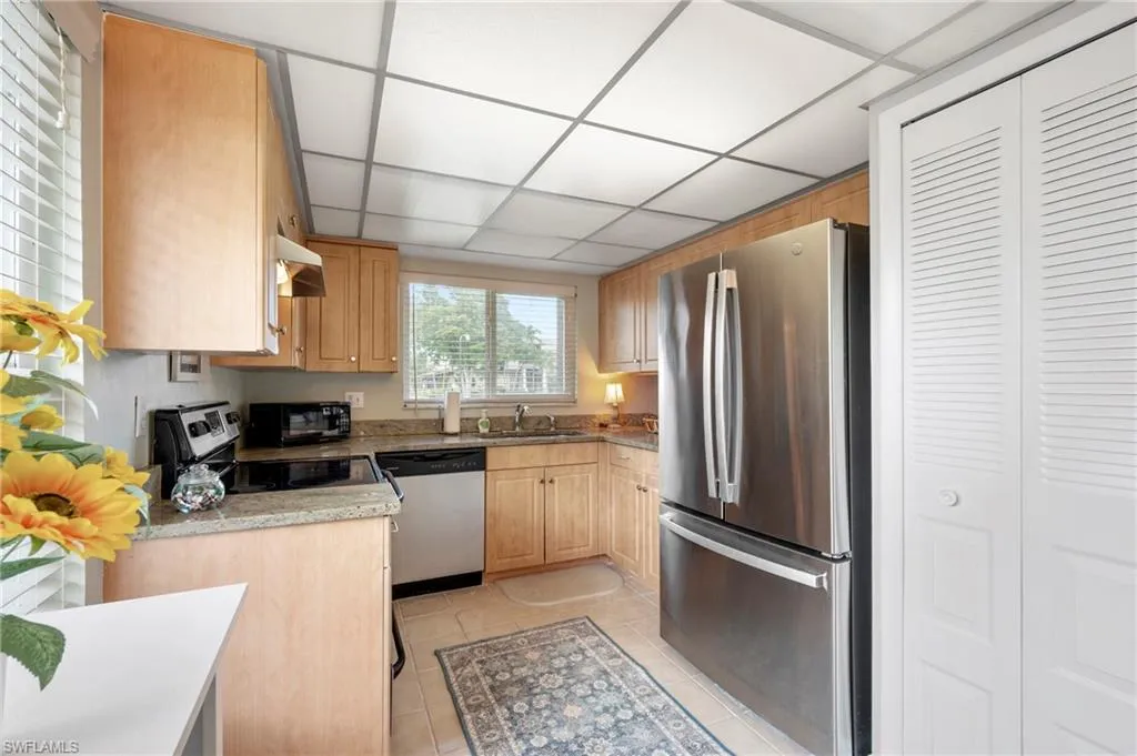 Enjoy Florida living! Don’t miss this 2 bedroom, 2 bath condo, that offers a beautiful upgraded kitchen, stainless appliances, private terrace for gardening &/or barbecuing. This split bedroom floorplan affords privacy. For your convenience, there is also an inside laundry room with extra storage. For fun, take a short walk down to the large clubhouse and enjoy the beautiful pool, have a quick game of shuffleboard, or relax in the sun. If you enjoy an active community, you can participate in the many social events that they offer. Other features include an assigned parking spot close to your door for easy access, and guest parking is available. Close to hospitals, schools, shopping, and dining. Come see this well cared for community, with mature landscaping.