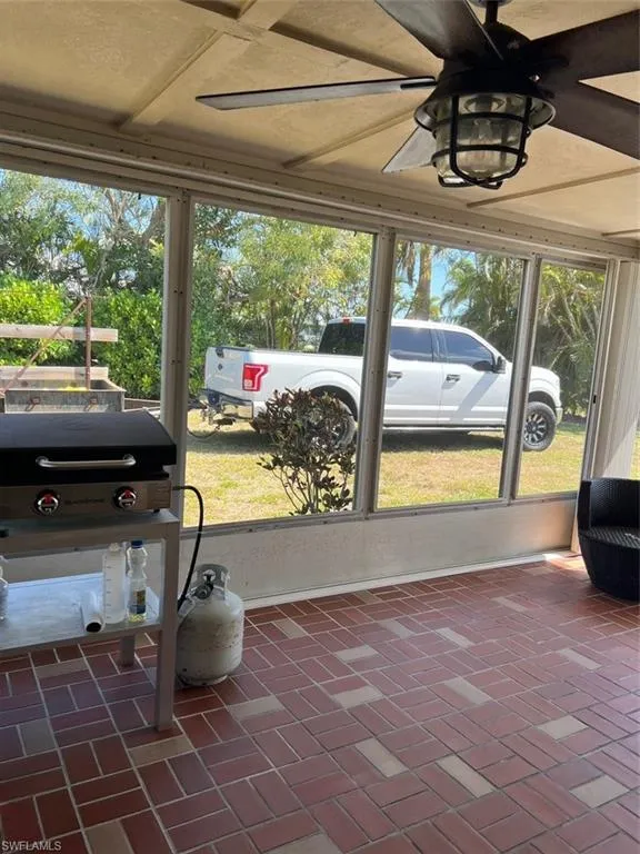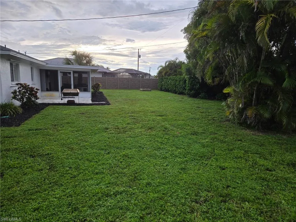 PRICED BELOW MARKET!!! DESIRABLE IDEAL LOCATION AND EASY ACCESS JUST REDUCED! No flood insurance required and quick commute East to Ft. Myers and beaches via Cape Coral Parkway. Situated on dead-end street across from Gulf access waterfront homes, the rear yard convieniently allows no hassel off street parking from side road. Recently painted exterior with custom designed mailbox, custom side entrance to garage and front storm shutter. New roof installed March 2021. Eat-in kitchen with tray ceiling lighting and new SS appliances less than 6 mos old. The enclosed lanai offers year round added living space and room for large gatherings. This split bedroom layout, formal dining room and living room with sliders to lanai makes this home an easy fit for retirement or just starting out. Separate Laundry room off gargage with outside entrance and stationary tub. SELLER’S FHA LOAN can be assumed with Seller release. Additional information available upon request. The RIGHT size home with all the RIGHT features in the RIGHT location.