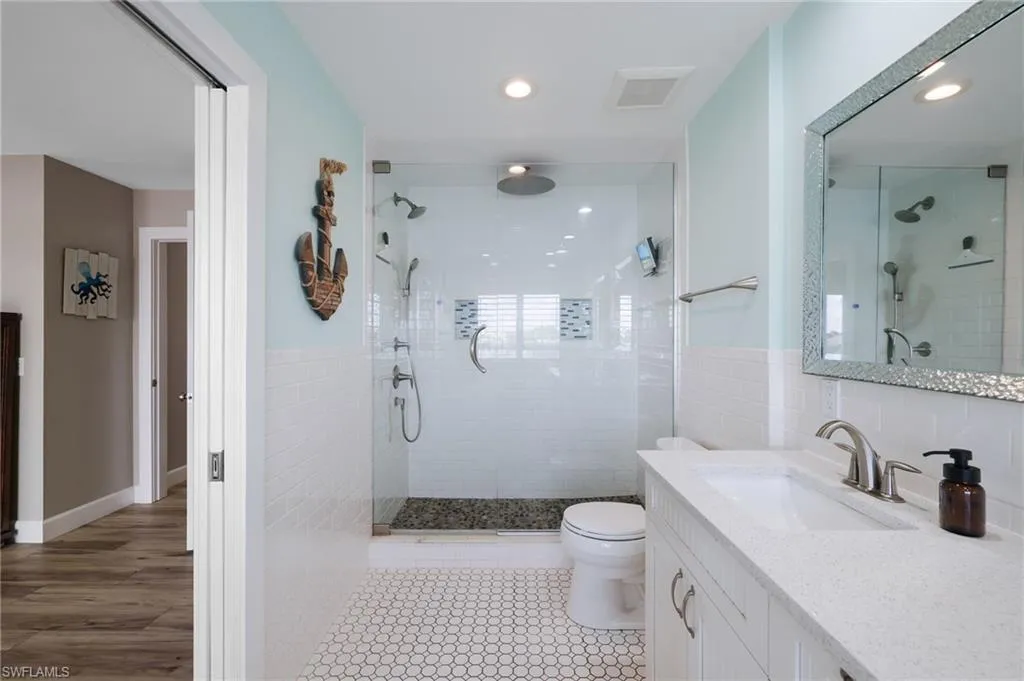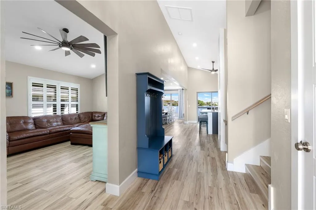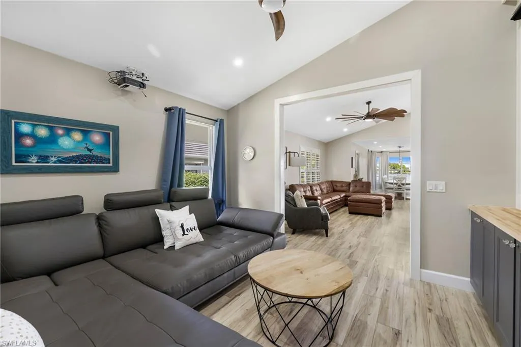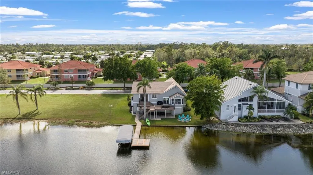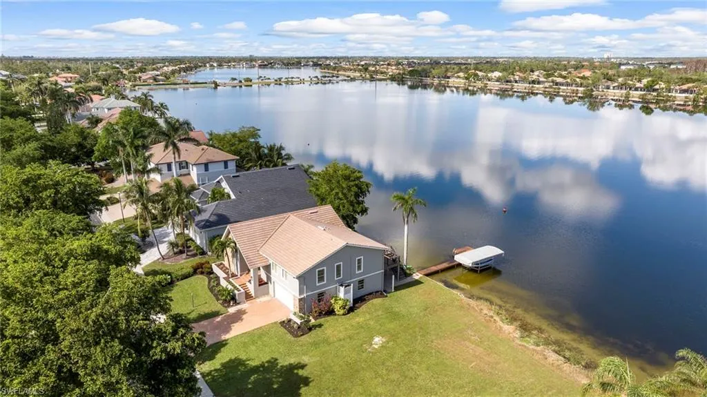 Imagine life in the heart of Fort Myers, Florida, where year-round sunshine dances through swaying palms and lake breezes whisper serenity. Tucked within the exclusive Harborage community, this fully remodeled lakefront cottage is a rare gem—offering the perfect blend of tranquility and recreation, with direct access to a private ski lake. As you arrive, an extended Trex deck welcomes you to the art of outdoor living. With a roughed-in outdoor kitchen ready for your culinary vision, entertaining becomes effortless. The 4-car garage, finished with sleek epoxy flooring, is a haven for car enthusiasts or anyone in need of extra space. Inside, thoughtful design meets everyday elegance. An open-concept floor plan frames expansive lake views, inviting nature to become part of your daily rhythm. A custom-built library offers a quiet refuge, while a private movie theater room sets the stage for cozy nights in. Every detail has been elevated—new flooring underfoot, modern doors throughout, and beautifully remodeled bathrooms. The primary suite features a spa-worthy bath, complete with a rainfall shower and soaking tub that gazes out over the water. For the culinary-inclined, the gourmet kitchen is a showstopper: a sea glass backsplash, farmhouse sink, and a custom walk-in pantry with built-in cabinetry and shelving bring both beauty and function. Throughout the home, built-in closet organizers keep life stylishly simplified. Step onto your private dock, where your boat awaits on a 4,000 lb lift with a 12V motor and manual crank. Whether it’s a morning ski or a sunset cruise, the water is always ready. Located in a warm, close-knit neighborhood with access to a private boat launch and the 10 Mile Canal—just a 20-minute ride to Estero Bay—this is more than a home. It’s a personal paradise. The home was thoughtfully built with elevated living areas that remained untouched by storm waters. Onsite boat storage adds another layer of peace of mind along with a flood insurance policy that is transferable. Come embrace the Fort Myers dream—a lakefront haven where leisure, luxury, and Florida’s natural beauty meet.