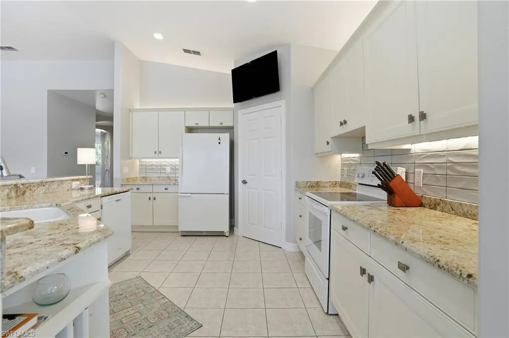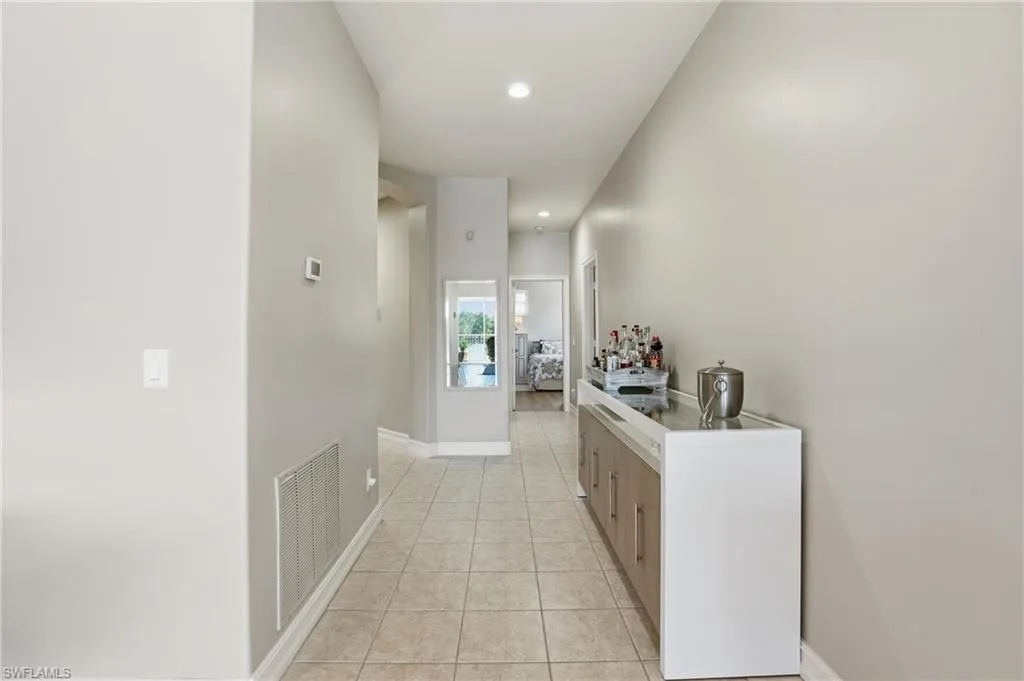 This TURNKEY condo shows like a model! Tasteful updates include guest bath total remodel with a beautiful walk-in tiled shower, a lovely large vanity and built in shelves for linens/toiletries. The upstairs units are very spacious offering 3 bedrooms + Den and volume ceilings. The elevated view overlooking the lake and private preserve provides a beautiful scenery from the lanai, great room and primary bedroom. A new air conditioning system was installed March 2022 and the hot water heater was replaced Aug 2023. The laundry room has a new stackable washer/dryer system to maximize the space allowing for a newly installed deep sink for the owner’s convenience. Electric fabric hurricane shutters are across the screened lanai and the majority of the windows have 3M hurricane proof film. Luxury Vinyl flooring was installed in all areas that are not tiled. The 2 car garage is very spacious and the drive way is extra wide for easy access in and out of the garage. For your convenience the owners are leaving all furniture and a fully equipped kitchen & linens. Bring your clothes and golf clubs and you are moved in ready to hit the links…. Wildcat Run offers an 18 hole Arnold Palmer Signature golf course, tennis, pickleball and bocce courts. Two restaurants on property provide casual and formal dining opportunities. A full time certified trainer is available M-F to help you with your wellness program. Golf Memberships are available by contacting the club. Wildcat Run Golf & Country Club is conveniently located in SWFL minutes from 3 large malls, fine/causal dining and SWFL International Airport. White sandy beaches within 20 minutes from your door. Enjoy the backwater bay and Gulf of America which abounds with wildlife.