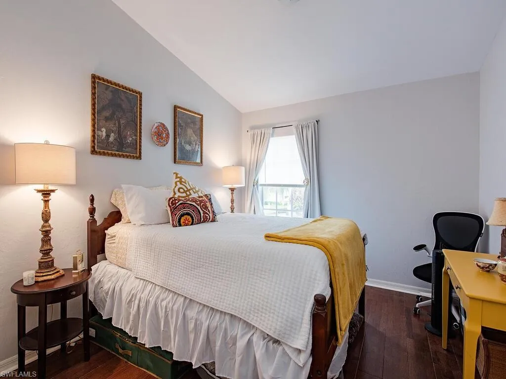 Welcome to your Naples home in a great location! This beautiful 3-bedroom, 2 and a half bath property has an open floor plan with wood flooring, complemented by some newer appliances, fans, and lighting. Your outdoor area is welcoming for morning coffee or cocktail hour with a private back screened lanai. Down the street is a grassy dog park. This property is part of a community loaded with amenities, including a pool, hot tub/spa, basketball courts, tennis courts/pickleball. The location offers complete convenience, approximately five miles to pristine white sand beaches, top-rated schools, and great shopping and dining selections. This residence is not only a home but an escape from what most of us are used to. Come enjoy life in Naples, FL.