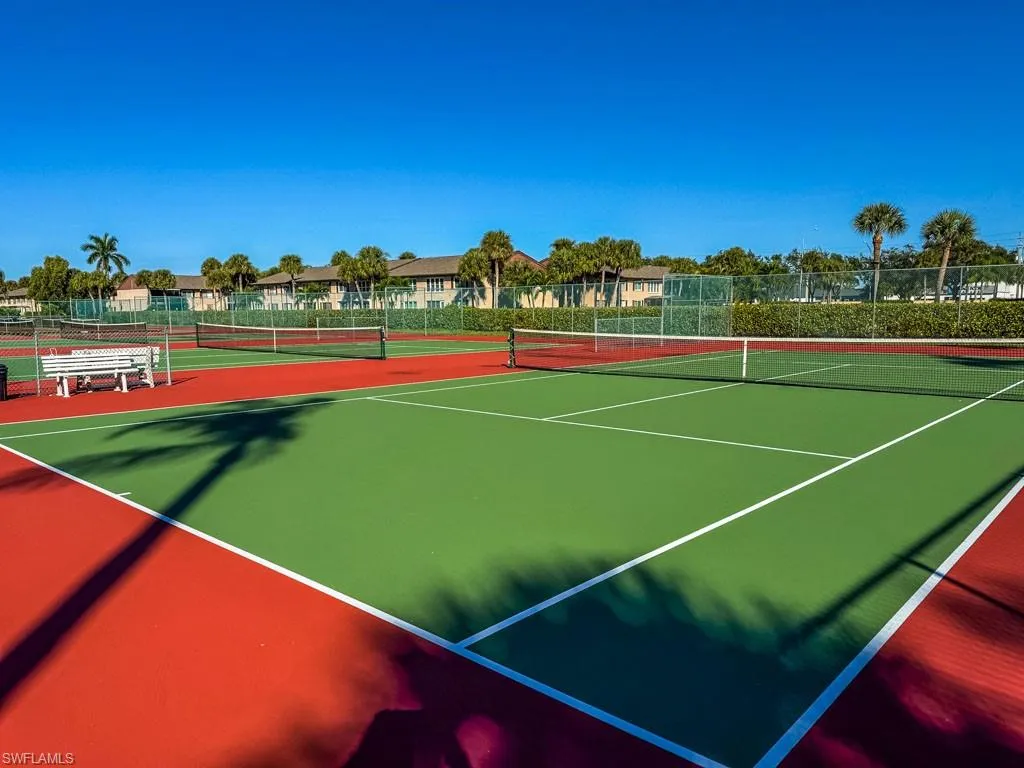 The amenities include a spacious resort-style pool, tennis and pickleball courts, a clubhouse, and bocce.