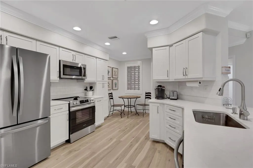 Welcome home to this beautifully renovated 3-bedroom, 2-bath condo with tranquil water views. This turnkey residence comes fully furnished and move-in ready, with every detail thoughtfully updated for modern comfort and style. Enjoy elegant crown molding and plantation shutters throughout, a 2023 hot water heater, 2023 A/C, and a stunning kitchen featuring stainless steel appliances, a single large sink, luxury vinyl plank (LVP) flooring, and a washer and dryer.