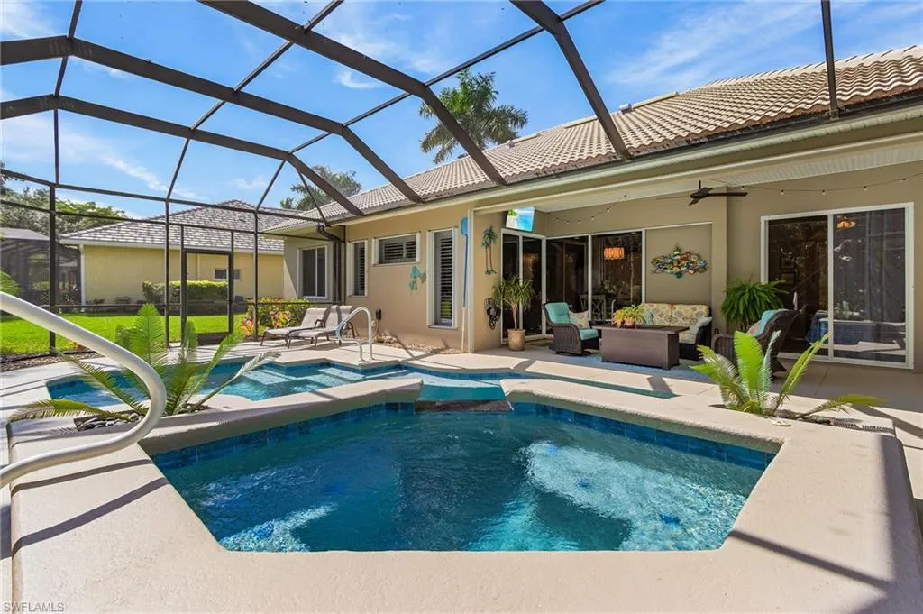 Come and see this beautiful updated 3 Bedroom Home with a private pool and spa located on a 1/4 acre lot n quiet Shady Bend overlooking the peaceful preserve. This home sits in the portion of Verandah developed by Bonita Bay with large lots deep setbacks and attractive mature landscaping. You will notice and long driveway of well maintained pavers allowing for plenty of parking. The interior is painted a light of white color bringing a happy environment to all interior living areas. The kitchen area is stunning with its white cabinets, quartz counters and tile backsplash tying the colors together throughout the home. Enter the pool area to view the resurfaced and newly tiled pool and spa surrounded by a freshly painted pool deck. The home has been extremely well maintained. Verandah is a gated golf/tennis pickle ball community with countless activity options. Dine inside or out, walk or bike 9 miles of trails through boardwalks and more. Kayak along the meandering Orange River. Enjoy the Resort pool and Fitness Center. For golfers – memberships are available for two 18 hole courses – one a Jack Nicklaus course and the other Bob Cupp designed course. Should you have a dog, there are two dog parks for them to enjoy. When you purchase this home you are buying an added lifestyle you won’t want to leave!