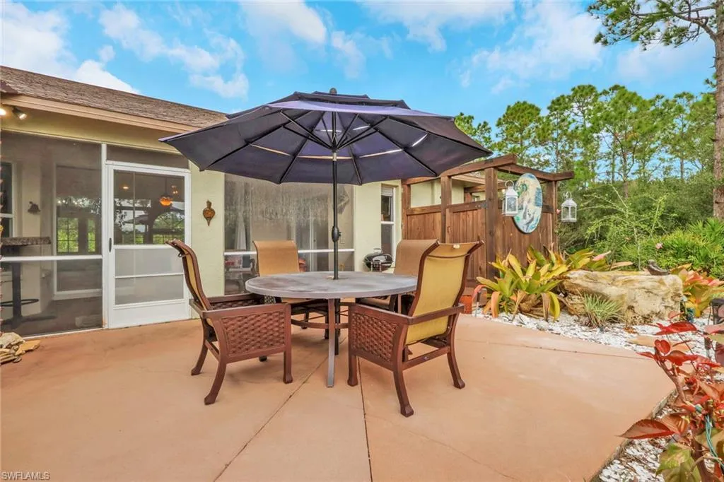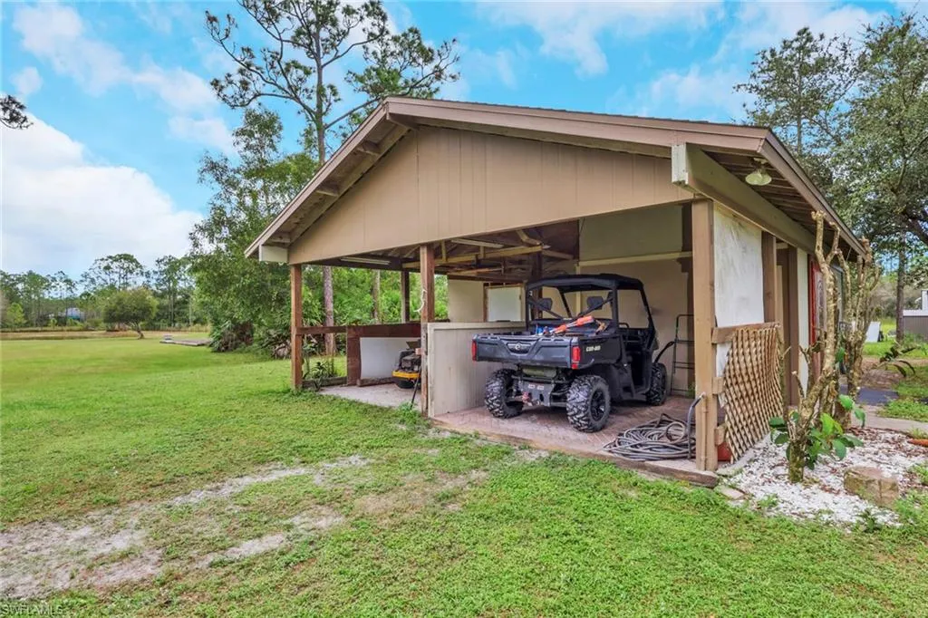 Experience the beauty of refined country living in this private 2.27-acre Golden Gate Estates retreat- a gated, fully fenced sanctuary offering timeless elegance, serene pond views, a 2020 roof, and the freedom of NO HOA or restrictions! Step inside this beautifully updated three-bedroom, two-bathroom home featuring an open-concept layout, split-bedroom floor plan, high ceilings, recessed lighting, and tile flooring throughout. Fresh interior paint enhances the light-filled spaces, creating a warm and inviting atmosphere. The custom kitchen is a true showstopper, featuring solid wood cabinetry, quartz countertops, a stylish new backsplash, stainless steel appliances, ample cabinetry, and a spacious pantry for added storage. The garage includes A/C, abundant storage space, a convenient side entrance, and excellent potential for a future guest suite or bonus room. Outside, experience the best of true Florida country living. A gated entrance with an electric gate ensures privacy and peace of mind, while a 100×100 stocked pond surrounded by palm trees creates a serene, picturesque setting. Enjoy the screened lanai with a beautiful wood-beam ceiling and direct access to the guest bath, a rinse off in the private outdoor shower after a day outdoors, or gather around the fire pit under the stars. The barn/workshop is perfect for tools, toys, or hobbies, and the additional patio area offers extra space for entertaining. The cleared front and back yards offer plenty of room to roam, garden, or expand. The property is RV, boat, live-stock friendly (even semi-truck friendly!). The wide lot allows easy access for large vehicles and deliveries—a rare and valuable feature. Whether you’re searching for a peaceful private residence or envisioning a versatile homestead with room to grow, this property offers the perfect combination of tranquility, flexibility, and potential. Perfectly located just minutes from everyday conveniences, this home offers the best of both worlds — peaceful country living with nearby amenities and exciting area growth. Enjoy close proximity to Big Corkscrew Island Regional Park, featuring miles of trails, sports fields, splash pads, and nature adventures, as well as top-rated schools and Ave Maria University. The area continues to thrive with new developments, including the brand-new Publix Plaza (The Shoppes at Orange Blossom) featuring Publix, Starbucks, Tropical Smoothie, Le Nail Salon, Great Clips, 5/3 Bank, and more- along with Ace Hardware, AutoZone, Aldi, Anytime Fitness, Tractor Supply, and new medical offices just minutes away. With its meticulously maintained home, expansive acreage, and exceptional versatility, this move-in-ready home embodies Golden Gate Estates living at its finest. Enjoy the ultimate combination of privacy, freedom, and functionality – all in one stunning property!