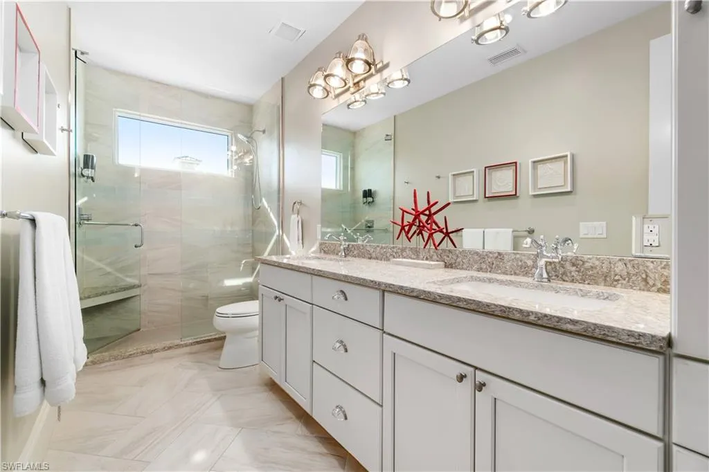 professional-grade appliances, and custom designer ceiling accents. The home has impact glass windows/sliders/doors, swimming pool with oversized paver deck along with a private elevator. This Bonita Beach home is the perfect island getaway or offers fantastic rental income with 5 bedrooms, den & location steps to waterfront dining & entertainment.