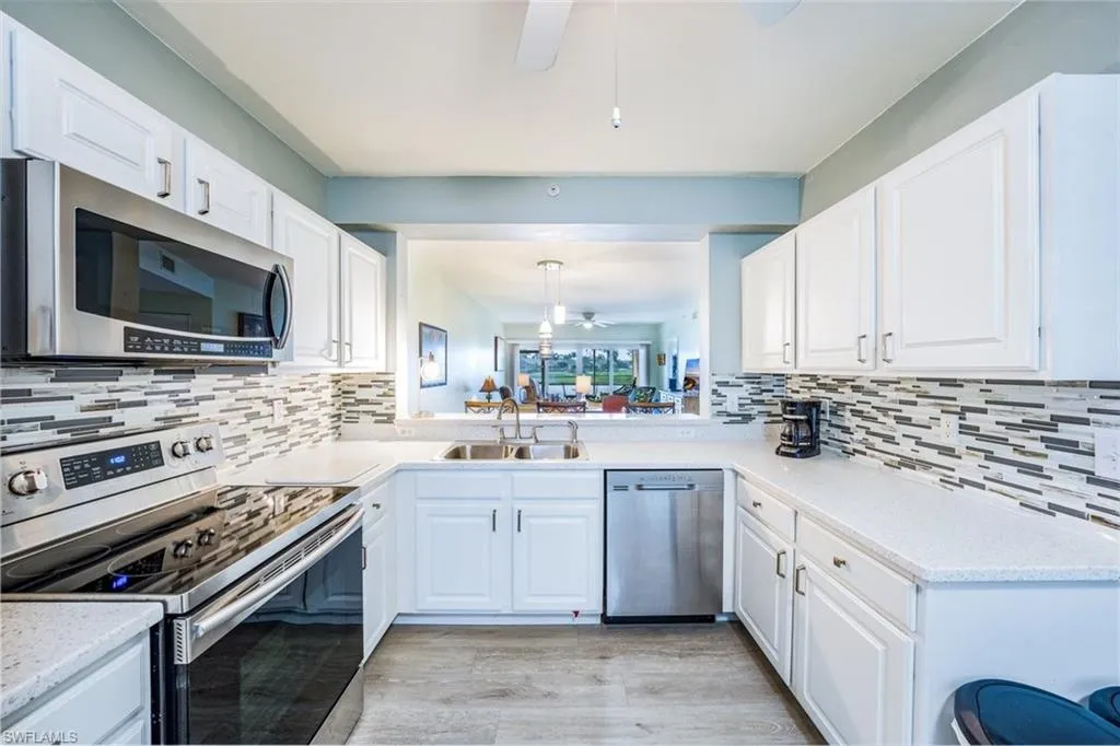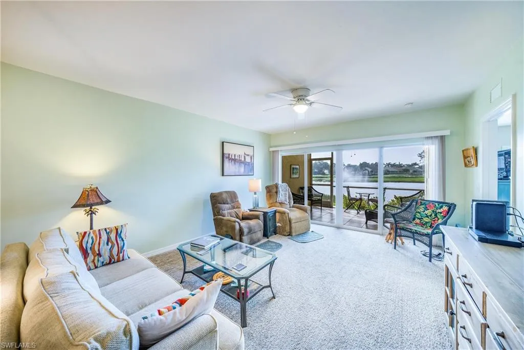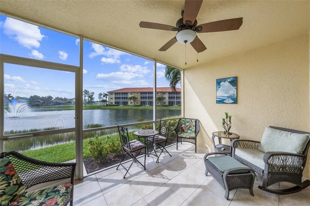 Beautifully maintained first-floor condo in the desirable Lakeside Hideaway community! This 2-bedroom, 2-bath residence offers a bright southern lake and fountain view, an open layout, and tasteful upgrades throughout. The kitchen features quartz countertops, Samsung stainless steel appliances (2019), and a breakfast bar perfect for entertaining. Additional highlights include plantation shutters in both bedrooms, Impact-resistant windows and doors, and a new A/C system (2023) for year-round comfort. Enjoy peaceful mornings on the screened lanai In-Unit Laundry, and the privacy of a split floor plan. Lakeside Hideaway is a pet-friendly, elevator-equipped community featuring a heated pool and BBQ/Picnic Area. Ideal for both full-time residents and investors – can be rented up to 12 times per year with a 14-day minimum lease. Conveniently located near shopping, dining, FGCU, RSW Airport and the beautiful beaches of Bonita Springs and Barefoot Beach.
