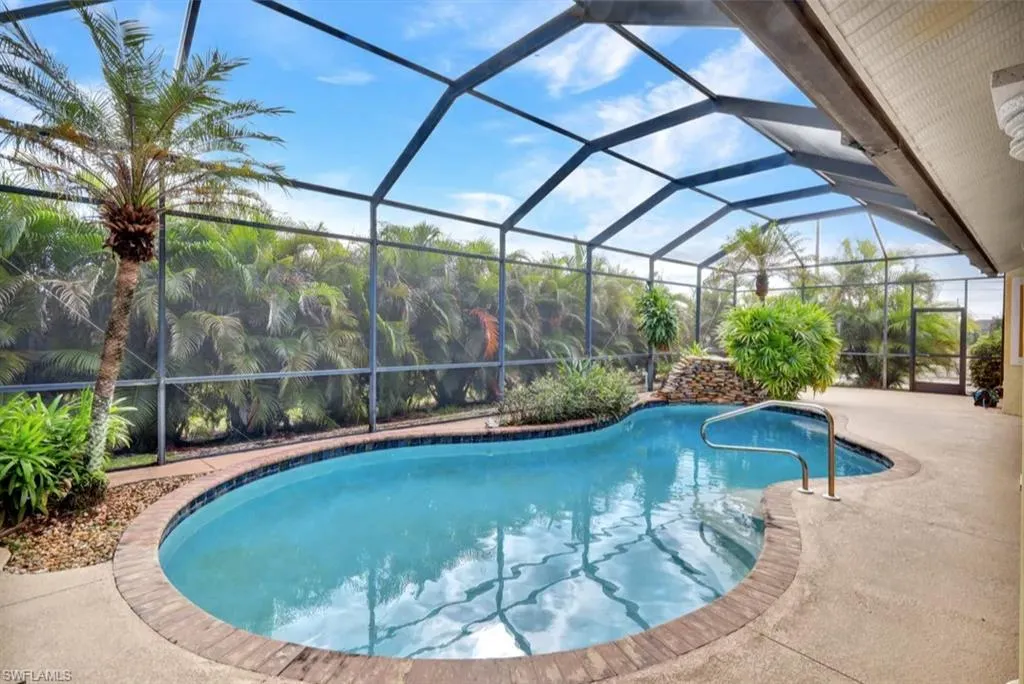 Welcome to your dream home in vibrant NE Cape Coral! This stunning property offers a serene oasis with a recently resurfaced pool, complete with a tranquil waterfall and surrounded by lush privacy palms—perfect for your own private escape. Step inside to discover modern updates, including a brand-new roof and fresh interior and exterior paint, ensuring a move-in-ready experience. Enjoy the convenience of central water with ALL Assessments PAID, along with the peace of mind from a 2018-updated HVAC system. Cooking will be a delight with newer appliances, featuring a sleek refrigerator and stove. Located in a friendly community, you’re just moments away from an array of restaurants and the Publix shopping center, making everyday living easy and enjoyable. Don’t miss the opportunity to call this beautiful property your new home!