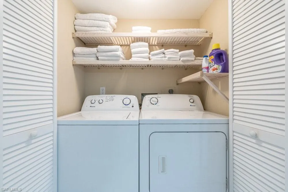 There is a heated outdoor pool overlooking the beach and Gulf, on-property dedicated parking spot right up front, and across the road is your tennis/pickleball court and auxiliary parking. Docks available for rent or purchase. The condo is renovated with a tropical feeling, overlooking the Gulf–you’ll be thinking you’ve landed in Paradise. There are panoramic views of the ocean, palm trees and sunsets from every room–the primary bedroom is also on the Gulf so you can hear the waves on the beach while you sleep. The second bedroom has views of Wiggins Pass Lagoon and your tennis/pickleball court. The beach is groomed daily and always quiet because there are only 30 units in this building with 13 private homes adjacent to the property. You could nap on the lanai, after watching the dolphins and manatees in the Gulf.