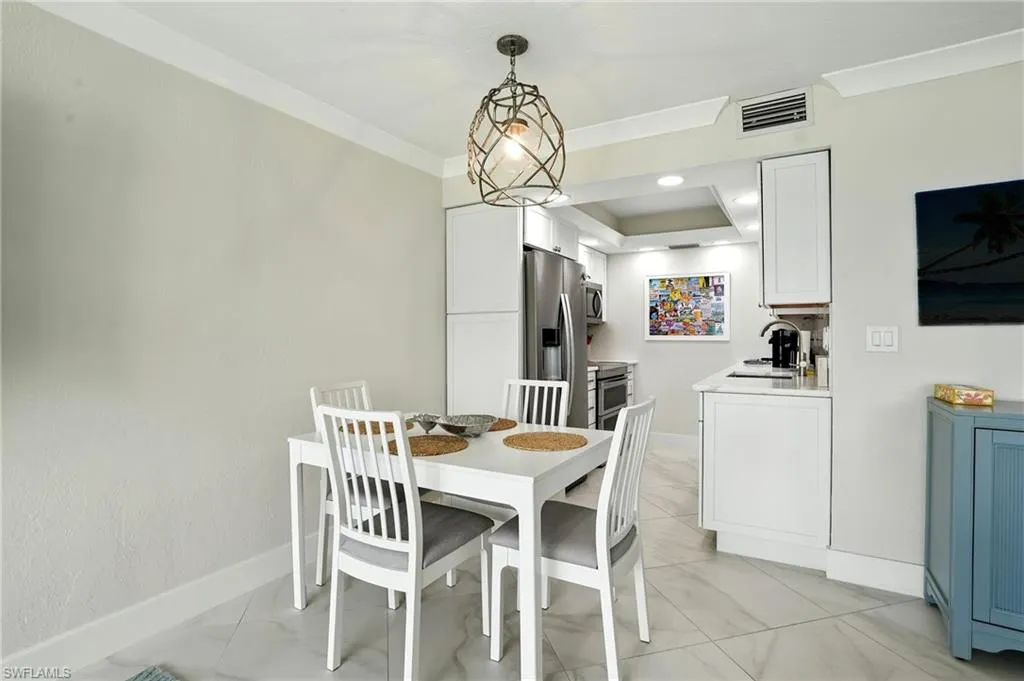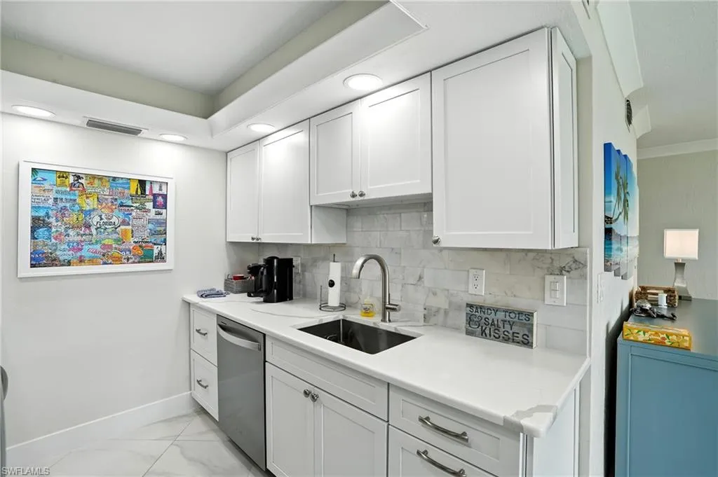 Embrace the ultimate coastal lifestyle at Sportsmans Cove Yacht & Racquet Club on Fort Myers Beach! This beautifully remodeled and furnished 1 bedroom 1 bath condo offers luxurious living with unbeatable bay views where dolphins play and your private dock is just steps away. The open layout features marble finish tile floors, crown molding, and a stunning kitchen with white shaker cabinets, quartz countertops, and stainless steel appliances. Relax on your front patio with outdoor storage, perfect for enjoying the breeze or morning coffee. The location is ideal, just minutes to Tina’s Bar, Doc Ford’s, and Parrot Key, with the bridge to Fort Myers Beach right nearby, giving you quick access to the sand, restaurants, and nightlife. Enjoy resort style amenities including a heated bay front pool, tennis courts, fishing pier, private dock, boat ramp, and boat storage.