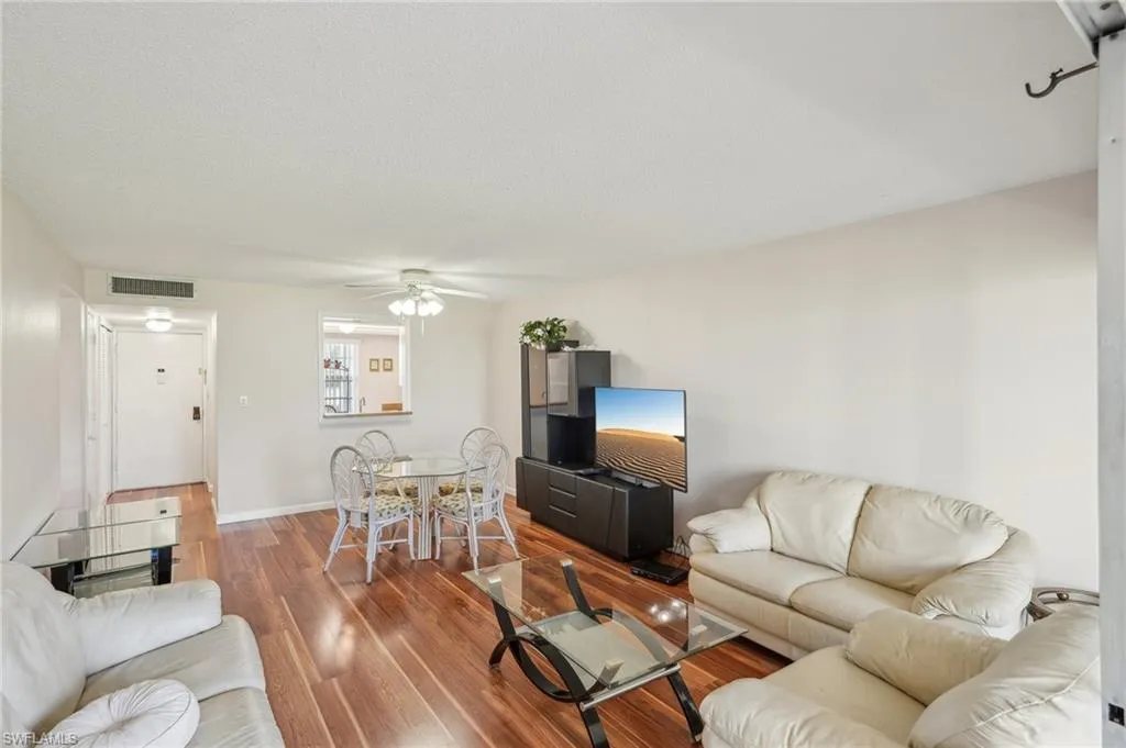 Updated Kitchen and Bath! Kitchen has High-end New Quartz counters and Stunning FULL QUARTZ BACKSPLASH, ALL NEW Stainless Steel Appliances, new undermount sink and faucet. Bathroom has been updated too, with a new vanity with large Quartz countertop. First Floor unit with Golf Course views to enjoy and NO STAIRS to climb. Every Day is a Play Day here at Seven Lakes! Start living this glorious Florida Lifestyle today. This home is ready to use as a Pied-à-terre or your full-time home. First Class Amenities are an amazing Value. Unlimited Golf, Tennis, Pickleball, Bocce, Billiards, Swimming, Fitness, Shuffleboard, Art Studio, Wood Working, Library, Biking, Walking, Card Room, Restaurant….even a Dog Park. Countless Clubs and Social activities. It’s easy to connect with old friends and even make a few new ones. You’ll love the Vibrant and Active lifestyle within the Private, Gated Community of Seven Lakes, centrally located and convenient to Airport, Spring Training Baseball for the Boston Red Sox and Minnesota Twins, Bell Tower Shops, Costco, Historic River District of Ft Myers and public transportation. You will appreciate the Wide Golf course views from the living room and lanai. This home has been upgraded with stunning wood laminate floors throughout all living areas, the bathroom and Florida Room are tiled. There is NO CARPET in this home. Home has been meticulously maintained with newer HVAC. There is plenty of storage space. Each bedroom was gorgeous cedar-lined closets, The kitchen has as a large pantry for storage and there is another deep closet on the lanai as well. Whether you are just looking for a part-time Florida home, residence or income property, this one could be the perfect fit. Call if you have any questions or would like to schedule a tour.