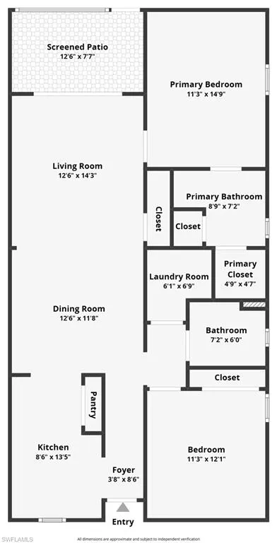 The primary suite features a walk-in closet and a private ensuite bath, thoughtfully separated from the guest bedroom for added privacy. Additional highlights include a dedicated laundry room and covered carport for convenience and comfort.