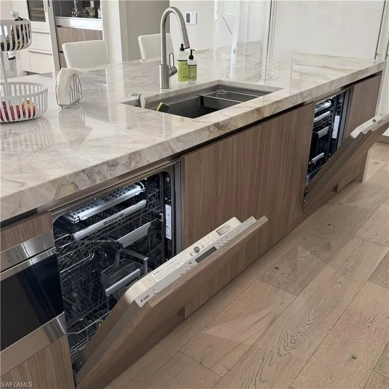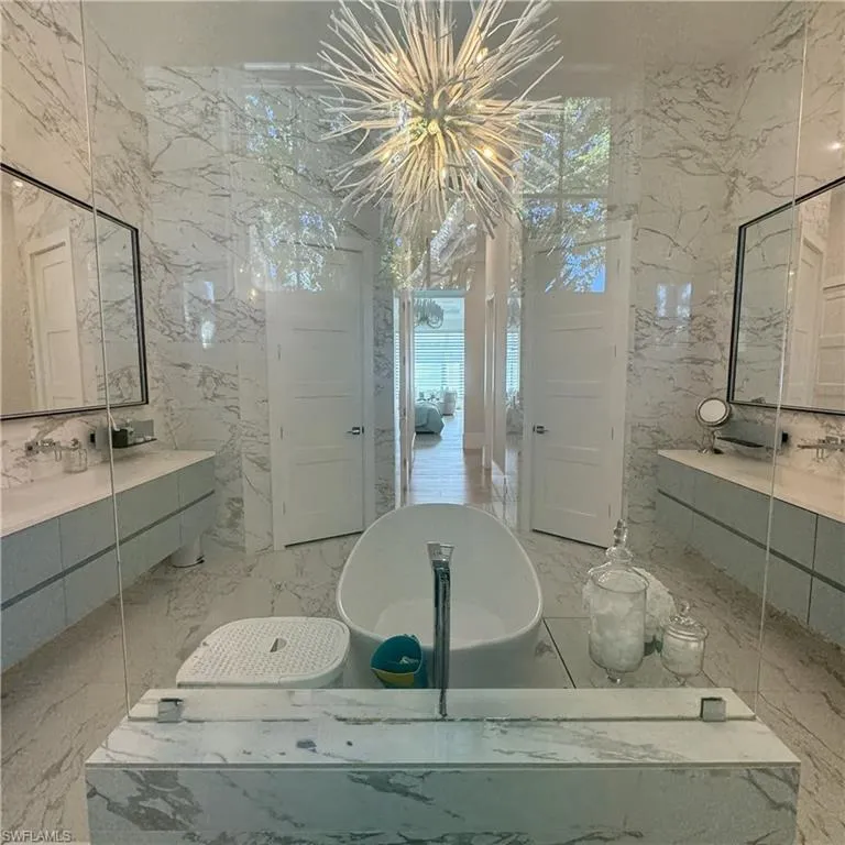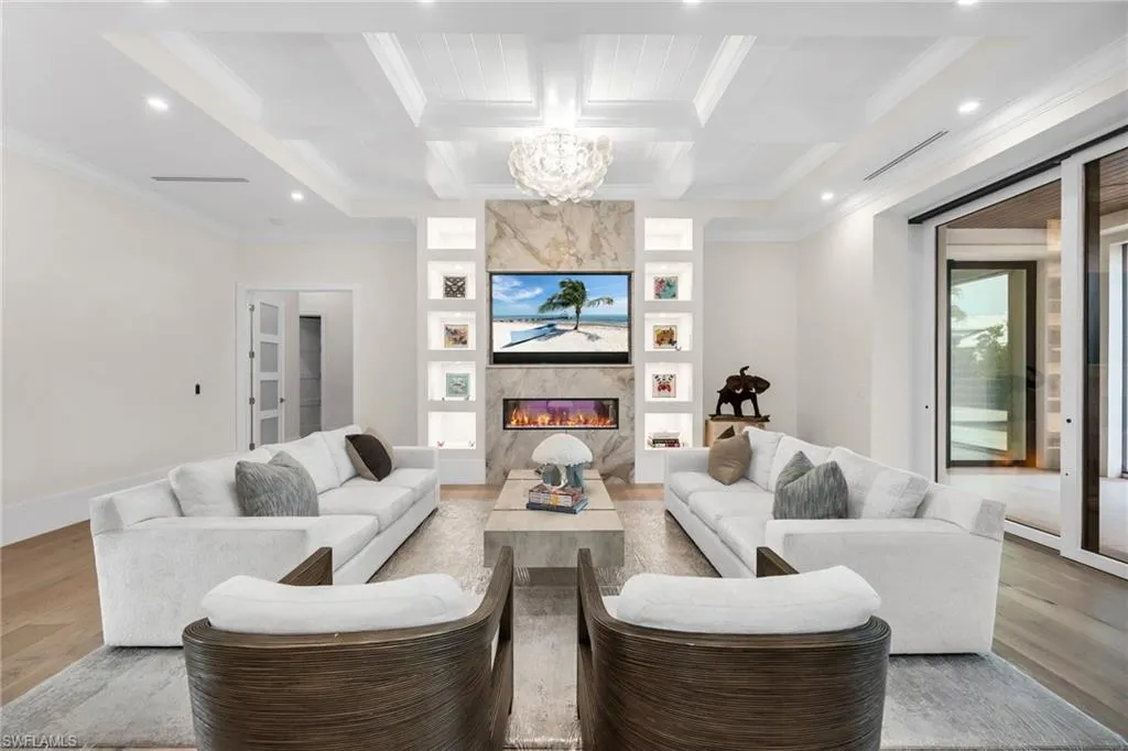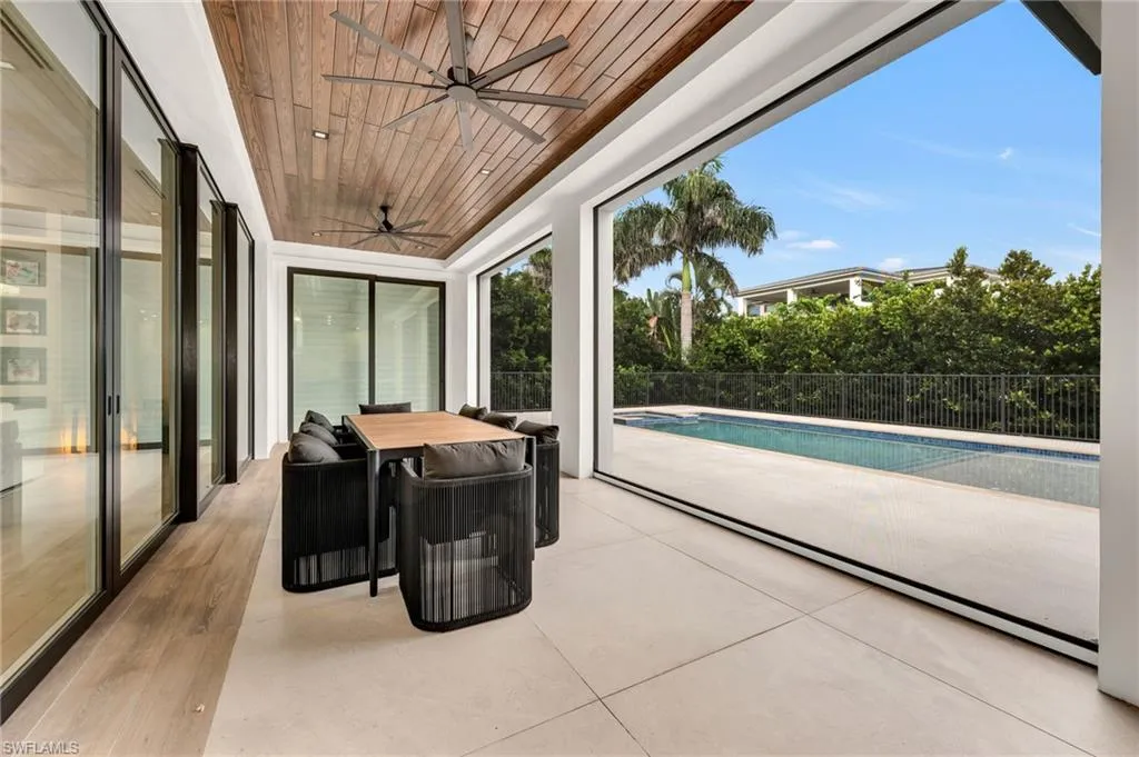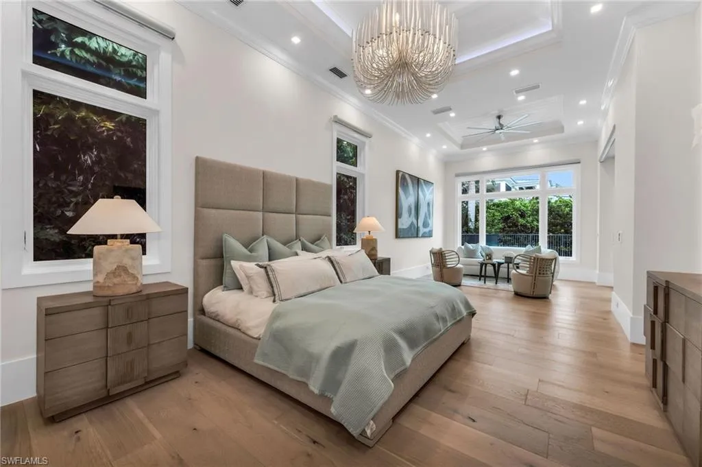 Stunning 2023 custom built home meticulously designed by Clive Daniel and Robb & Stucky interiors, furniture negotiable and features 5 bedroom/en suites, plus a Pilates/yoga studio. CHECK OUT THE VIDEO! This home is designed to be handicap friendly with an elevator that takes you from the garage level up to the main floor and second floor of the home, perfect for heavy lifting. The primary bedroom features his and her walk-in California Closets, a large walk in shower, a free standing tub, electric blackout hunter Douglas shades and 2 private Japanese smart toilet rooms. Entire home offers an array of technology throughout and is powered by Savant Automations’ new *brilliant smart home system* with video audio and sound controlled from every area of the house linked to your smart phone. As you walk through this well thought out floor plan, you will find an expansive family room with floor to ceiling Anderson pocket sliding glass doors that allows plenty of natural light with wide plank legno bastone flooring throughout. The family room will lead you into the oversized Chef’s Kitchen with Sub-Zero Wolf and Asko Appliances with a full butler’s pantry and 2 sub zero wine towers with 4 refrigeration drawers. The second floor offers 3 en-suites with private balconies along with a large bonus room that can be used as a home theatre set up or game room. Relax by your Resort Style salt water pool/spa surrounded by Brazilian trees while enjoying the Florida weather that also features a 900 sq foot lanai area with electric roll down screens and shutters, a fireplace, mounted 85” TV with 10 outdoor speakers perfect for entertaining. A built-in summer kitchen with outdoor subzero refrigeration and ice maker. This Moorings masterpiece has it all and touched by all. Within minutes to Historic Downtown Naples, white sugar Sand Gulf Beaches, and all that Naples has to offer! Just 1.5 miles to four seasons and waterside shops. Truly a rare find! 12 Foot Elevation.