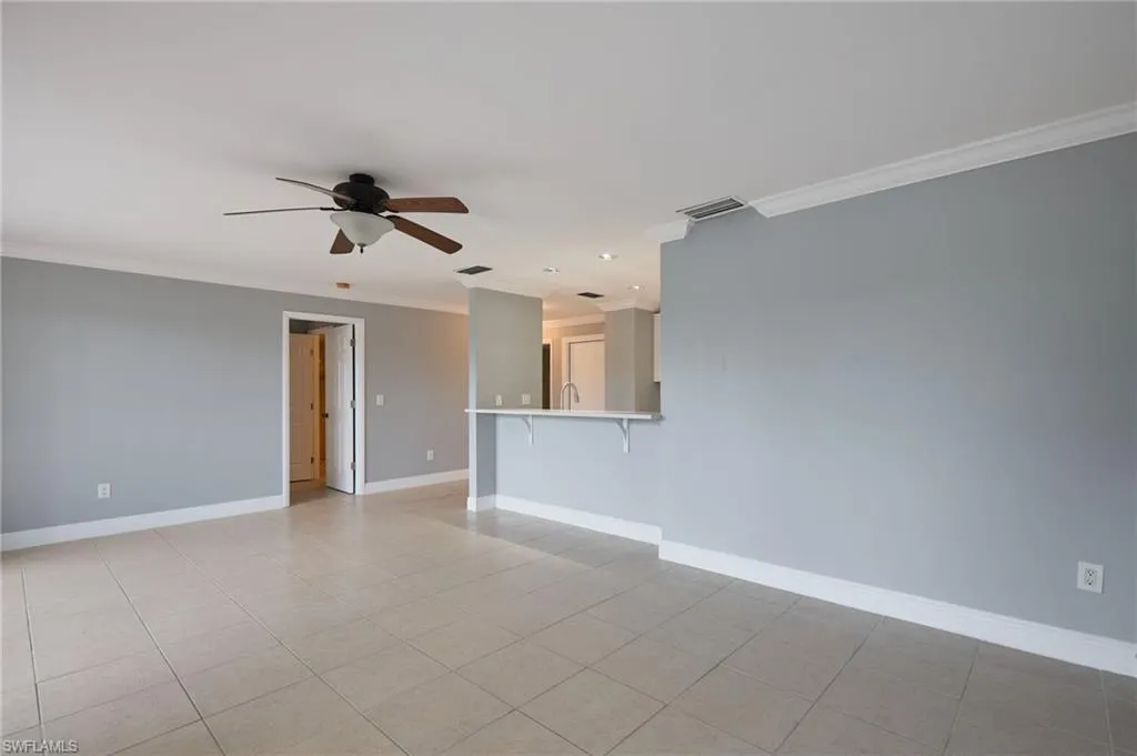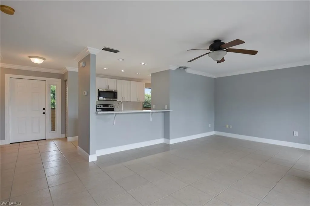 This well-maintained second-floor condo in the heart of Fort Myers features a spacious, open-concept layout with tile flooring throughout and a large kitchen equipped with newer stainless steel appliances, perfect for cooking and entertaining.