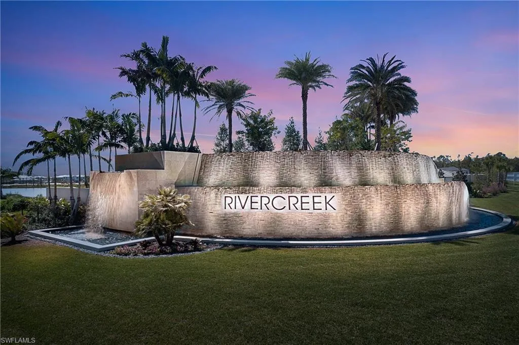 Welcome to GL home in Rivercreek in Estero. Olympia model has 5 bedrooms, 5 luxurious baths, with Pool & Spa with lake view. oversized 3-car garage. From the moment you step inside, you’ll be wowed by the soaring upgraded Kitchen & lighting, The chef’s kitchen Gas is a showstopper featuring top-of-the-line stainless steel appliances, quartz countertops, upgraded backsplash, and a huge island- perfect for entertaining. The open concept layout flows effortlessly to the great room, bathed in natural light from large glass sliders that lead to the screened lanai, overlooking the lake. This home is conveniently located walking distance to the clubhouse and community pool. Discover a guest suite and full bath on the main level- ideal for visitors or a live-in nanny. large loft area, and a dedicated office space offer endless possibilities for family, hobbies, or work from home. River Creek is a resort-style gated community packed with a clubhouse, fitness center, resort pool, sports courts, pickleball, tennis, basketball, playground, and more.