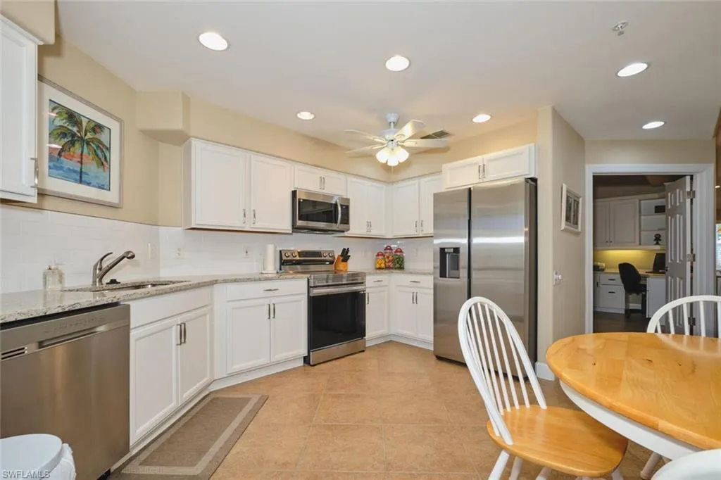 3 bedroom condo located in Lexington Country Club’s Golf Village. Bundled golf. A short walk to the main clubhouse and cart barn. Stunning golf & water views from the lanai. Overlooking the 13th green & fairway. Eastern exposure from the lanai. This unit has been totally updated in the last few years. No see-um screening on entry and the lanai. Tile everywhere but the bedrooms where there is LVT. Granite counters in the kitchen & both bathrooms. Plantation shutters. All cabinets replaced in 2023. All new Stainless Steel kitchen appliances and washer & dryer. Electric storm shutters on the lanai. Tiled lanai. Built in desk in the den and so much more! This unit is rented January 1st 2026 thru March 31st 2026 for a net of $15k. New owners must honor the rental.